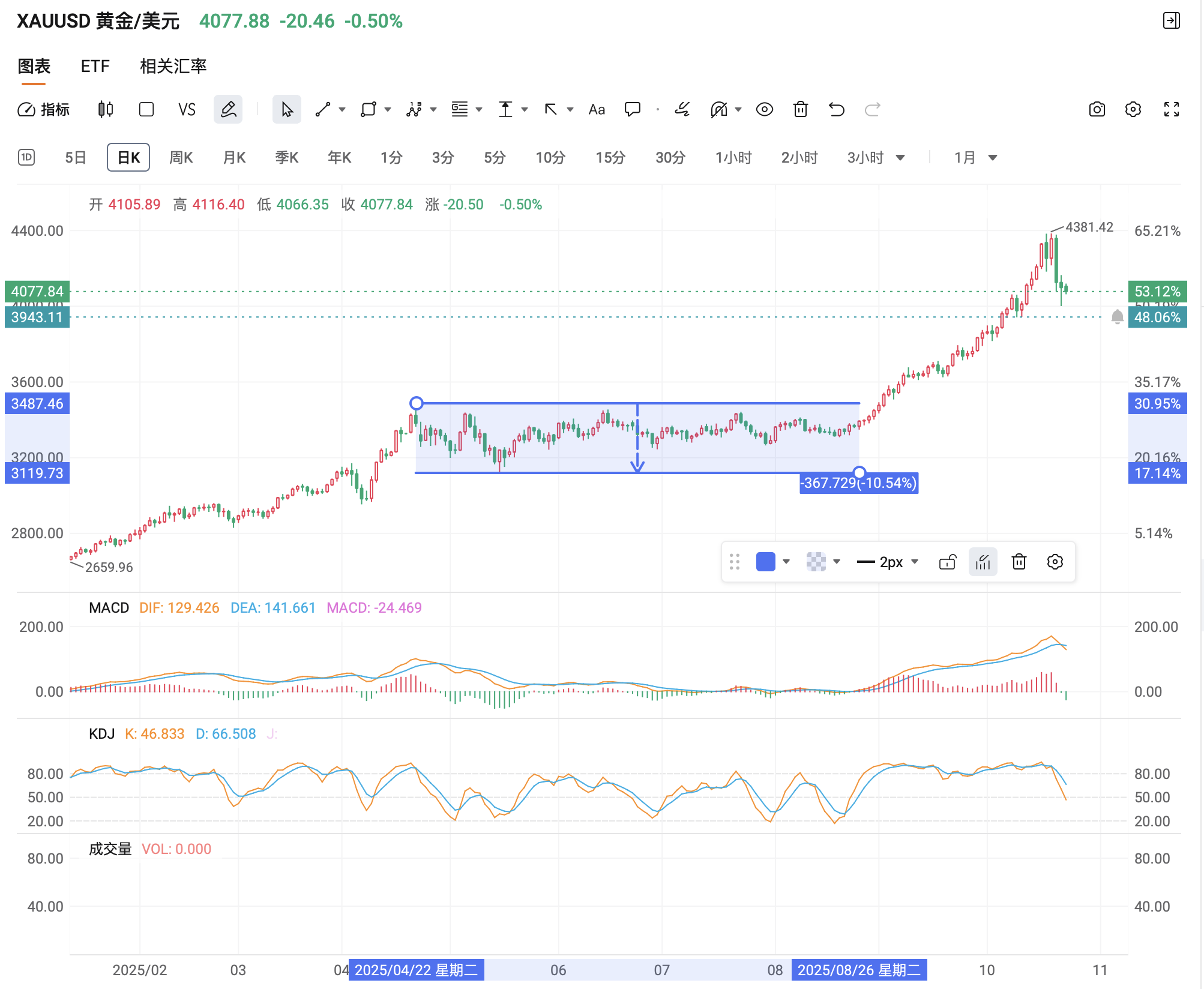 关于黄金我认为目前还是处于一个风险释放的阶段,是对此前极致冲高行情的修正,短期内市场将重点关注4000美元关口是否破位,如果金价跌破4000美元,则有可能进一步大幅下行,引发新一轮恐慌抛售