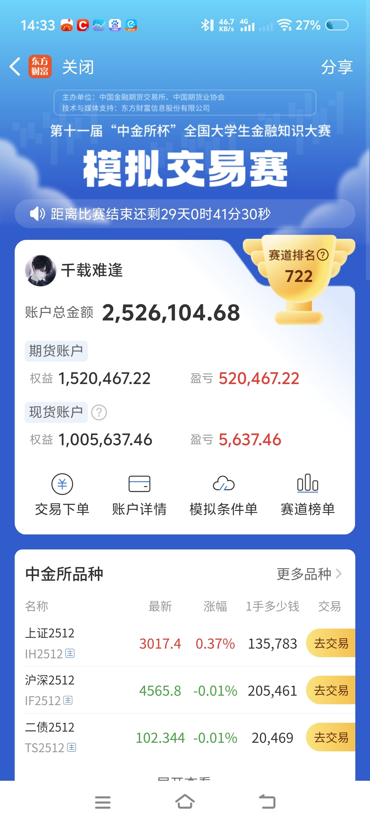 #中金所杯-正在热聊# 初赛没有奖励,排名好像没意义,证书复赛拿奖才有对吧?