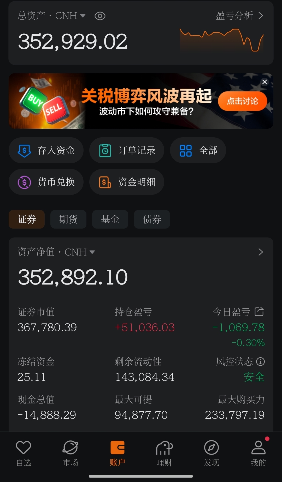 88.93万实盘亏光挑战,今日-600,已亏3.71万,待亏85.22万。