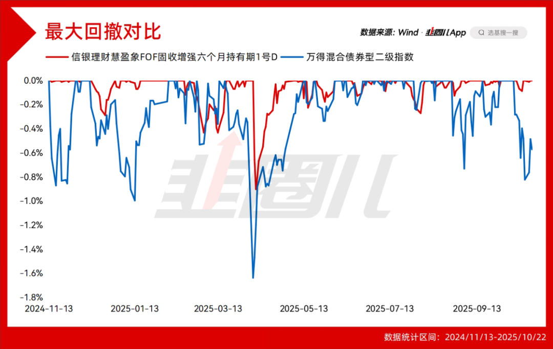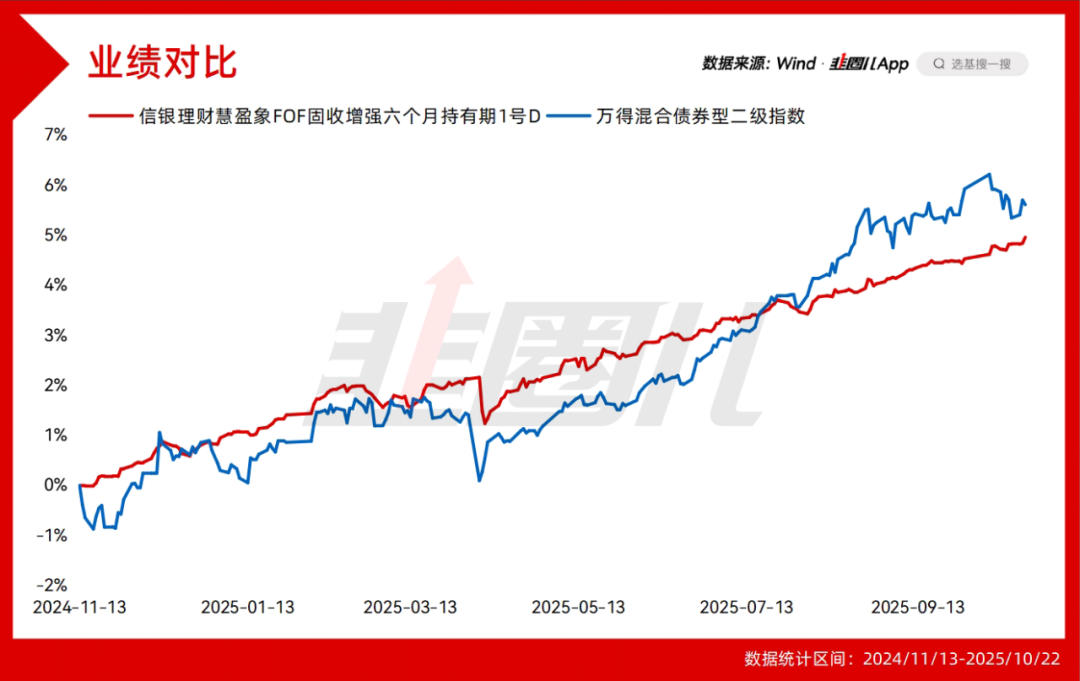 根据Wind数据,信银理财慧盈象FOF固收增强六个月持有期1号自2024年11月13日成立到2025年10月22日,成立以来实现年化收益率5.27%。