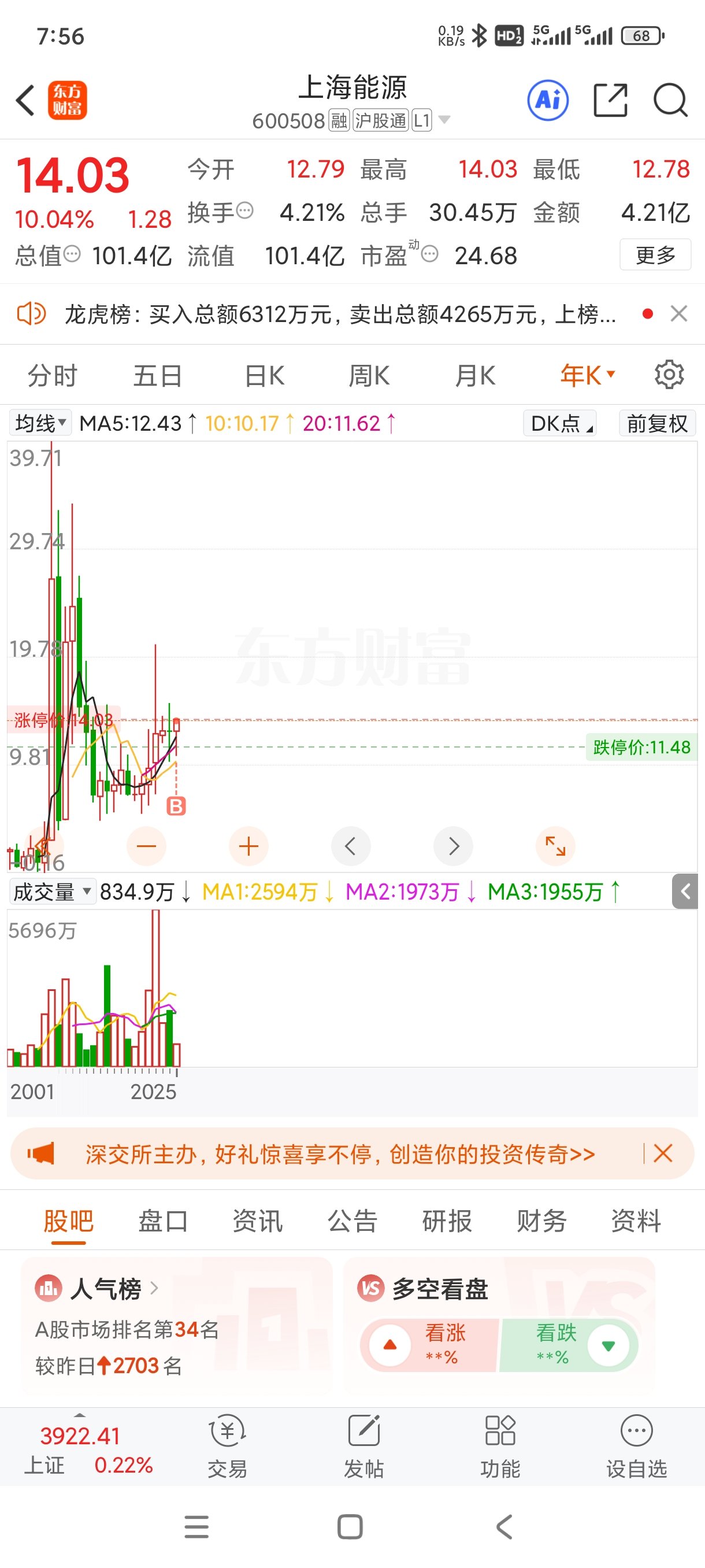 交易所2025年10月23日公布的交易公开信息显示,上海能源因成为有价格涨跌幅限制的日收盘价格涨幅偏离值达到7%的前五只证券上榜。上海能源当日收报14.03元,涨跌幅10.04%,偏离值9.82%,换手率4.21%,成交额4.21亿。