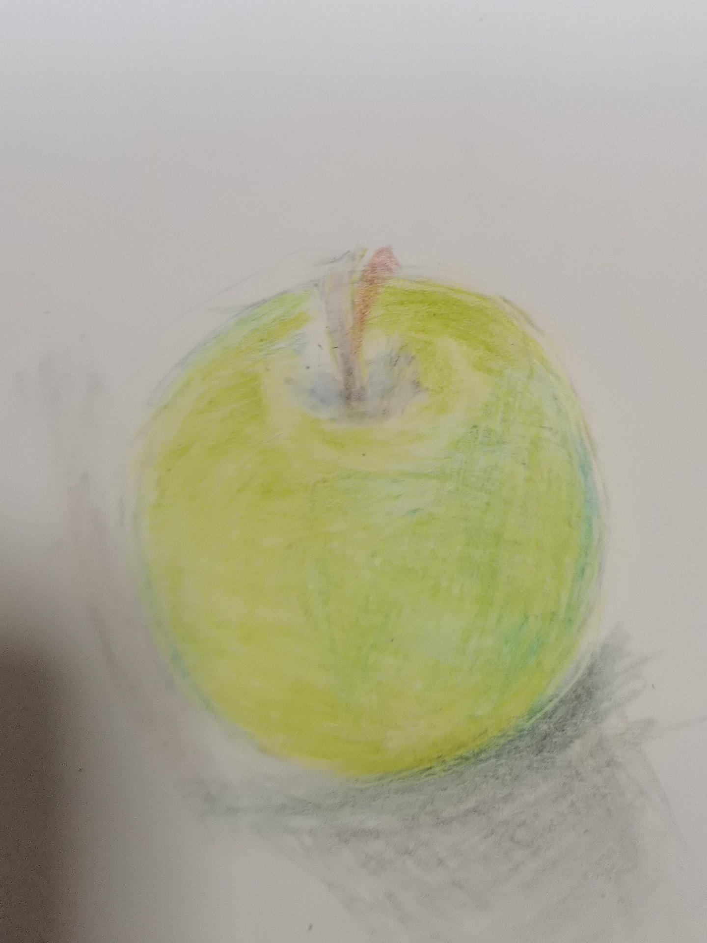 画青苹果彩铅宝宝跳呀跳,画个青苹圆溜溜。勾根小柄扎个角,咬口脆甜乐悠悠。