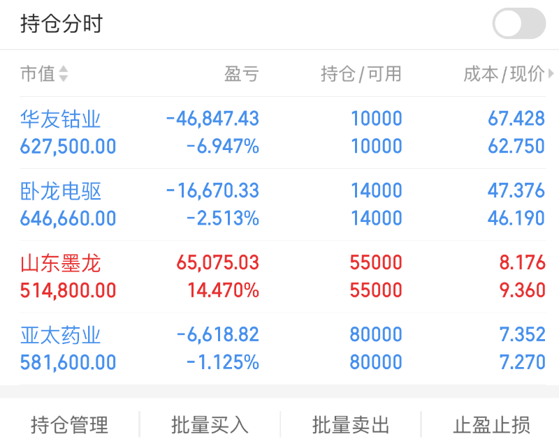 各位股友早上好!新的一天开始了,我是你们的老朋友,一个在A股市场摸爬滚打多年的“老韭菜”。昨天市场又是几家欢喜几家愁,我的自选股里,山东墨龙强势涨停(+9.99%),像个冲锋的勇士,看得人热血沸腾;而卧龙电驱和亚太药业却双双回调,分别下跌-3.61%和-5.58%,让人忍不住皱眉。今天,咱们就来聊聊这三支票的后市机会,以及我对当前市场的一点思考。