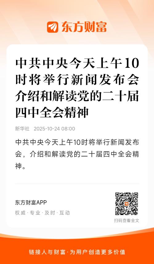 中共中央今天上午10时将举行新闻发布会,介绍和解读党的二十届四中全会精神。