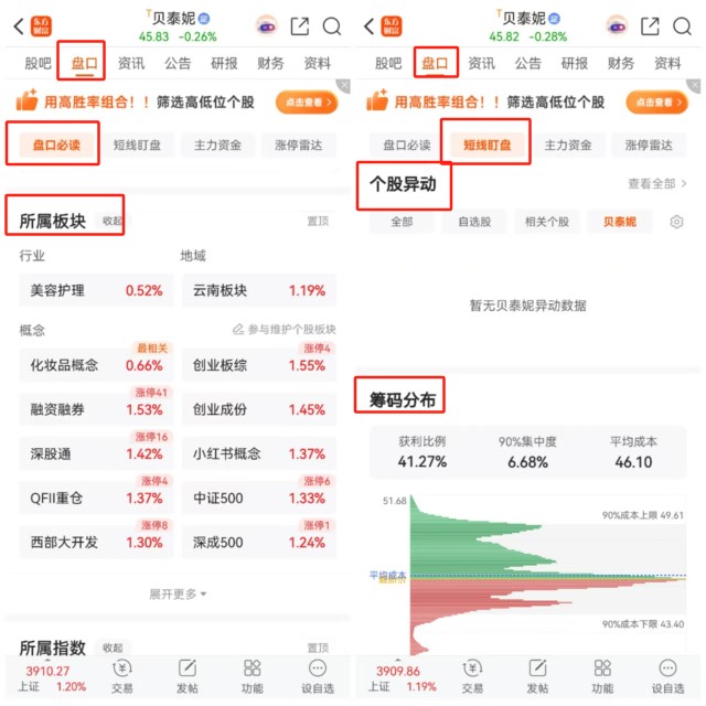 进入个股单页,点击下方盘口-盘口必读/短线盯盘,即可查看