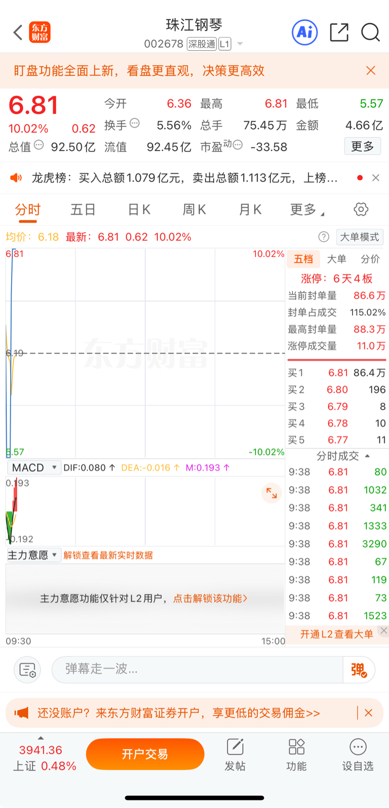 珠江钢琴 跌停反弹火箭反弹涨停,给大家上车时间是足够时间的