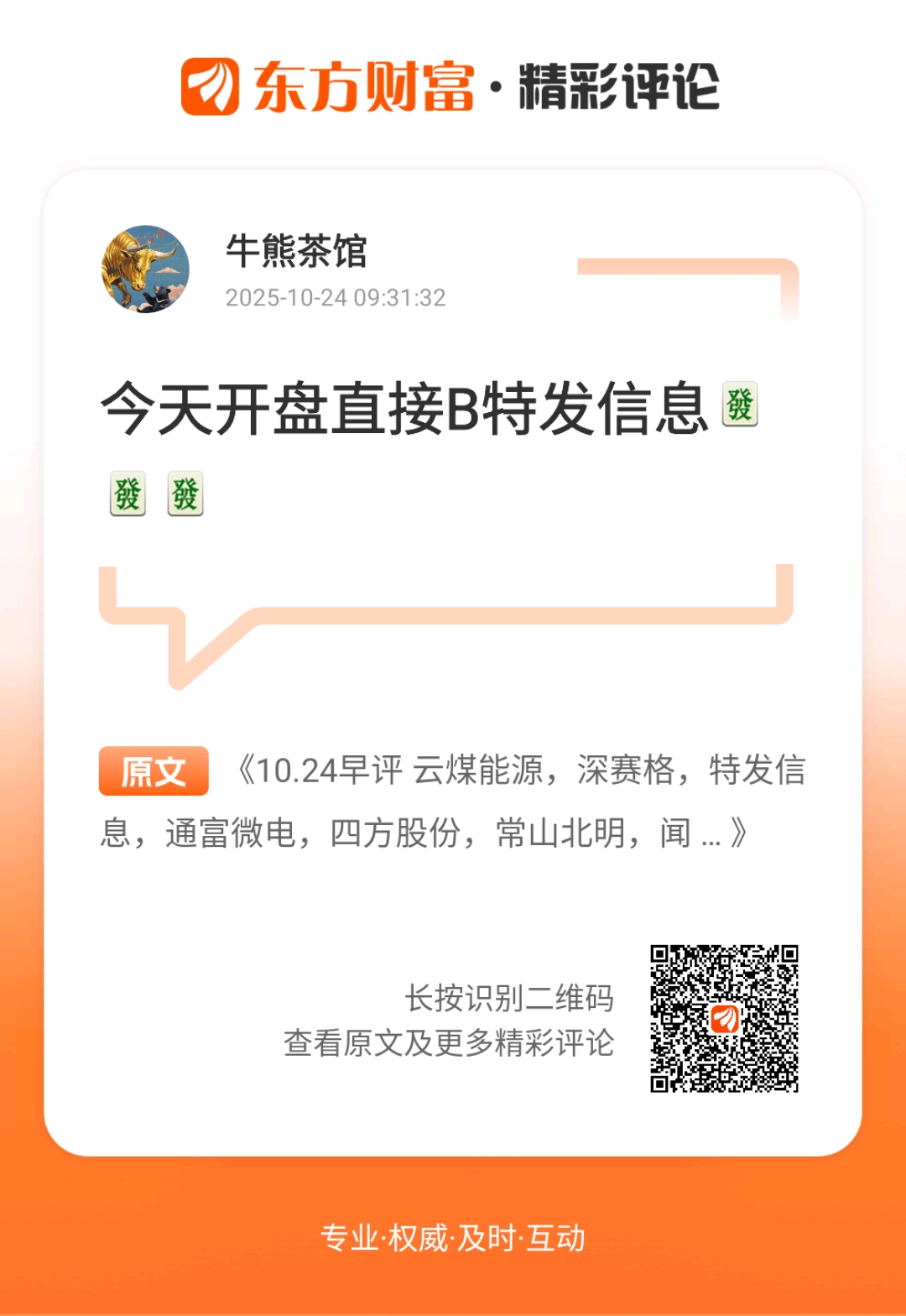//@牛熊茶馆 :今天开盘直接B特发信息