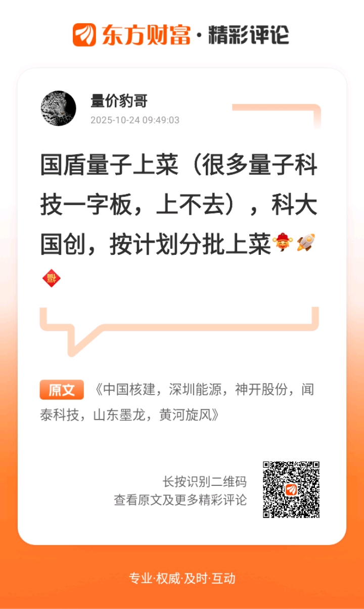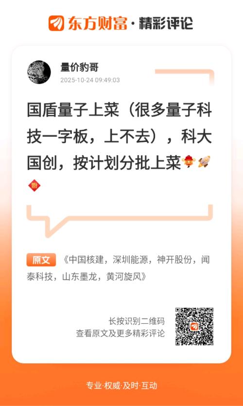 神开股份,这票业务范围挺广,石油勘探、钻采、炼化都沾边,主打产品是石油勘探设备、井控设备这些硬核家伙。最近动作也不少,7 月底的时候,它的全资子公司给山东未来机器人投了 1500 万,拿到 1.0990% 的股权。这家未来机器人不简单,做深海作业机器人很厉害,3000 米深海的油气工程、海上风电都有成熟案例,算是给神开拓展了新场景。8 月下旬还有个消息,我国科研团队在可燃冰利用上有突破,而神开的井口设备、测井仪器刚好能用到可燃冰勘探上,算是踩中了新风口。另外,它投资的瀚氢动力,一边做卫星动力系统,一边搞氢能无人机供氢设备,跨界跨得挺有水平。更值得说的是,它自主研发的碳纤维检测设备,填补了国内空白,在深地经济这个概念里算是龙头。之前都是一字连板,今天要是有机会进场,倒是可以多留意下。