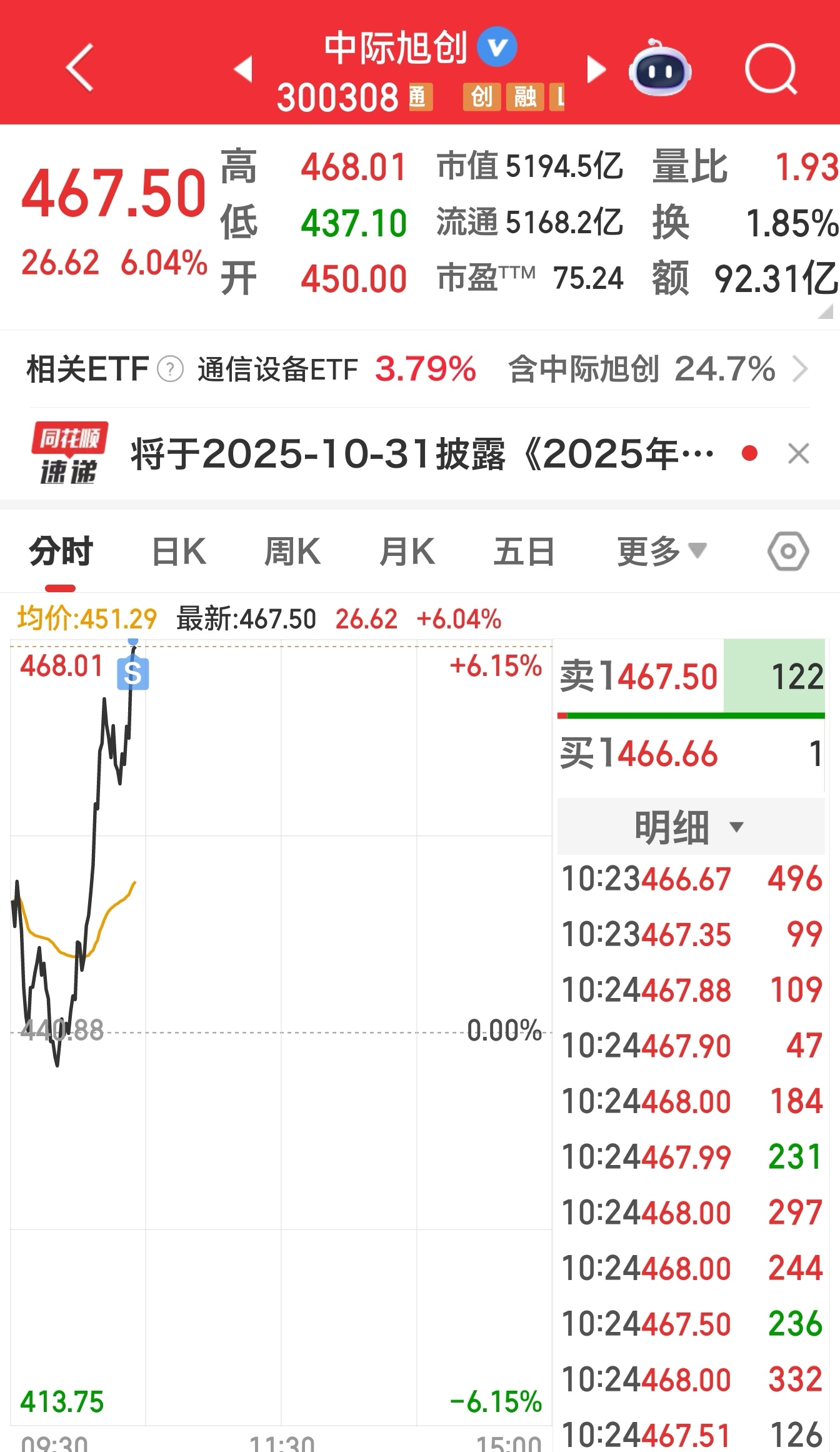 今天按计划继续468元箱顶减仓$中际旭创(SZ300308)$。