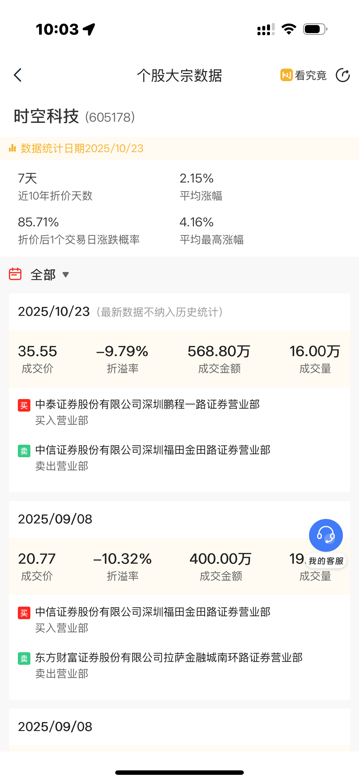时空科技发生一笔大宗交易成交量和折价率都不算高,但这票历史发生折价后通常上涨的概
