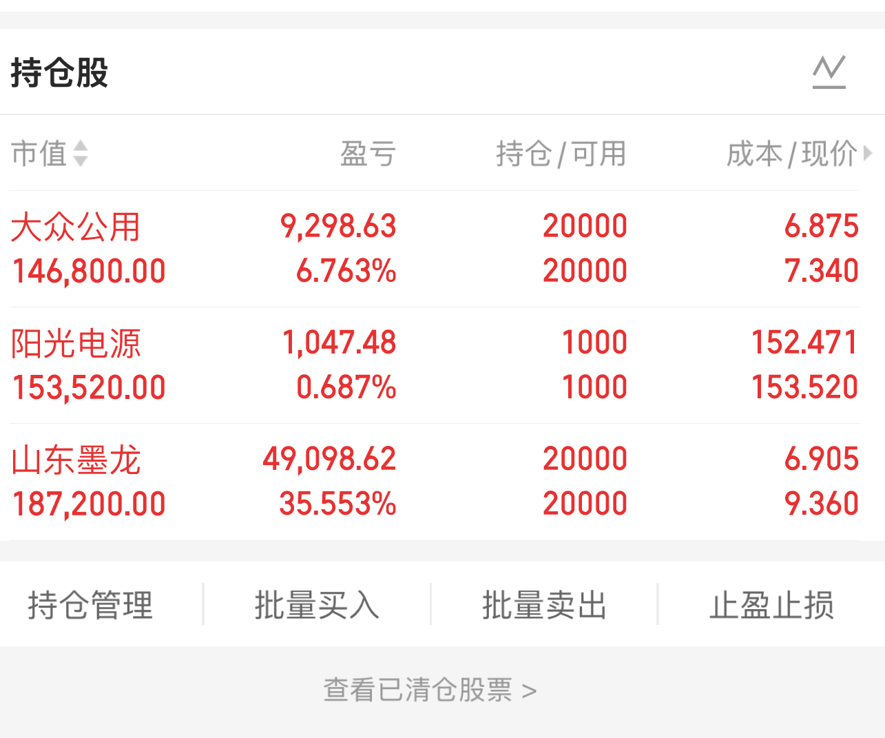目前手上持有情况: