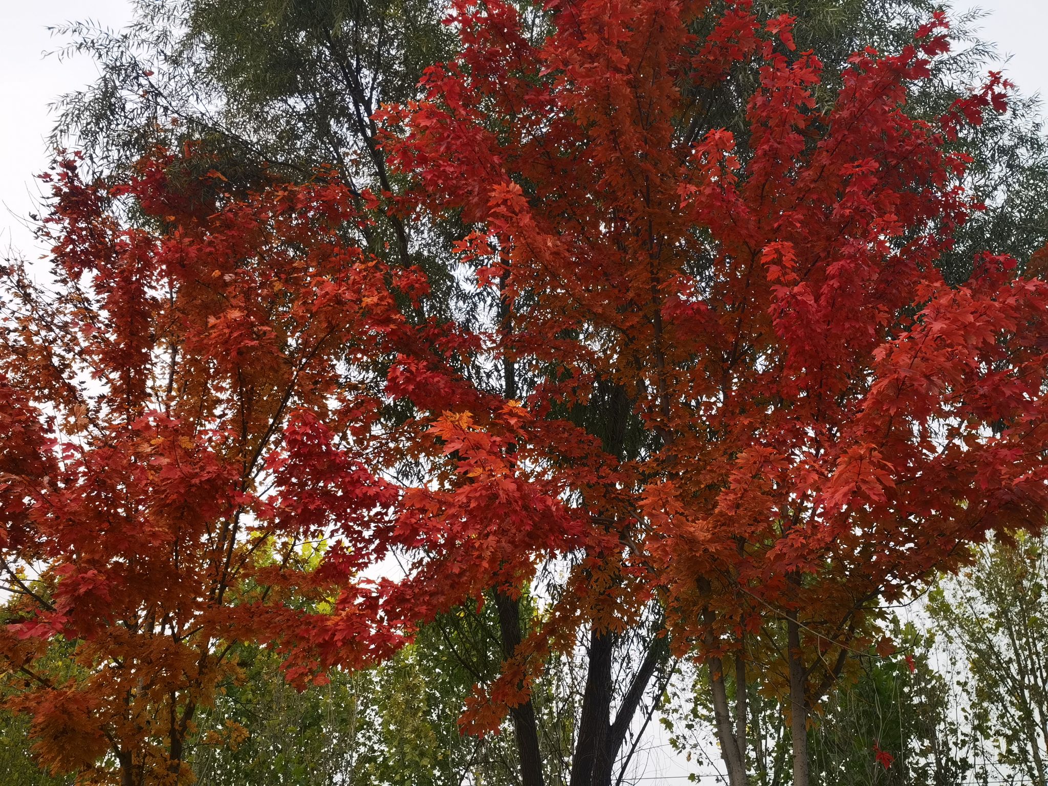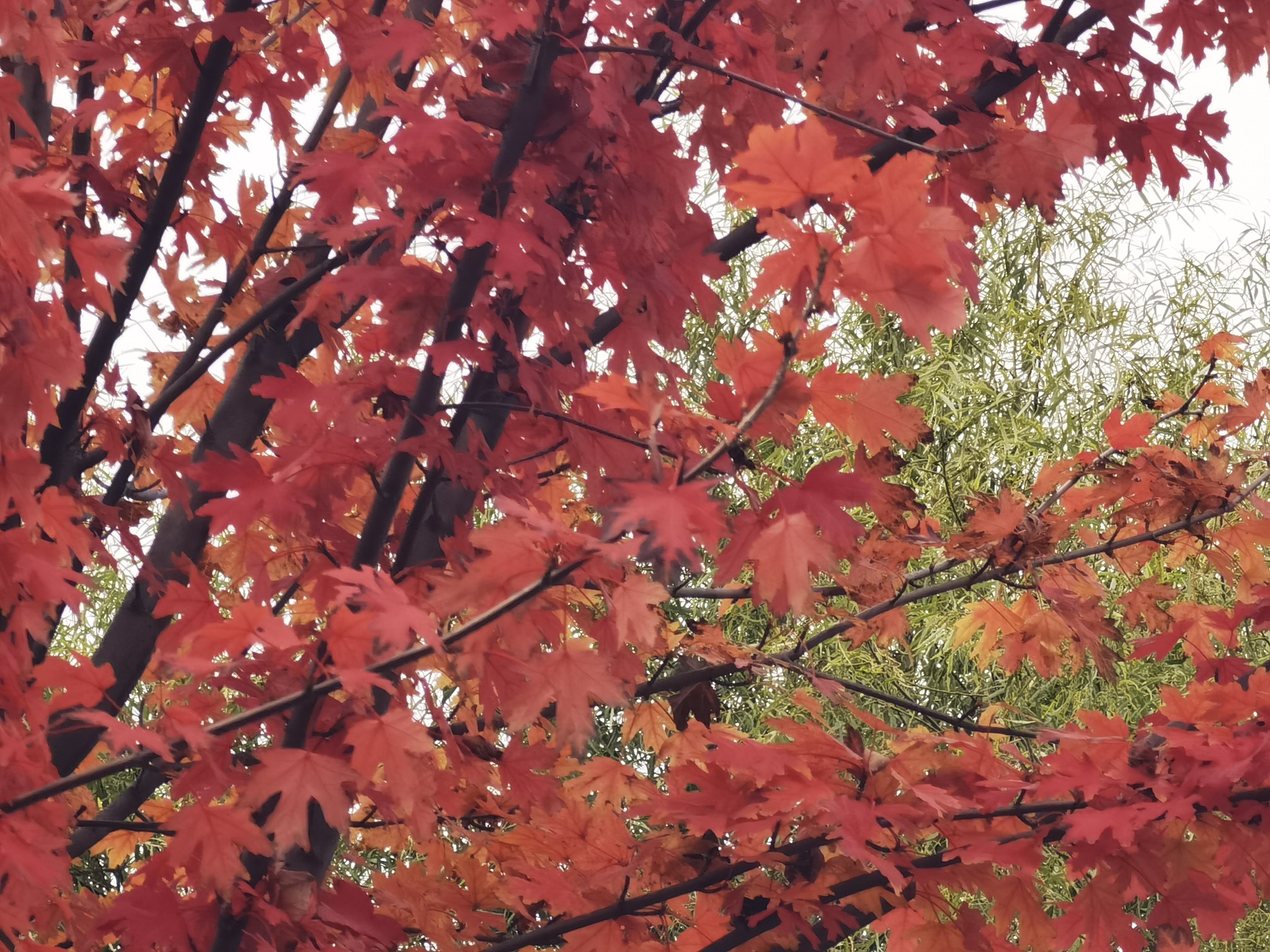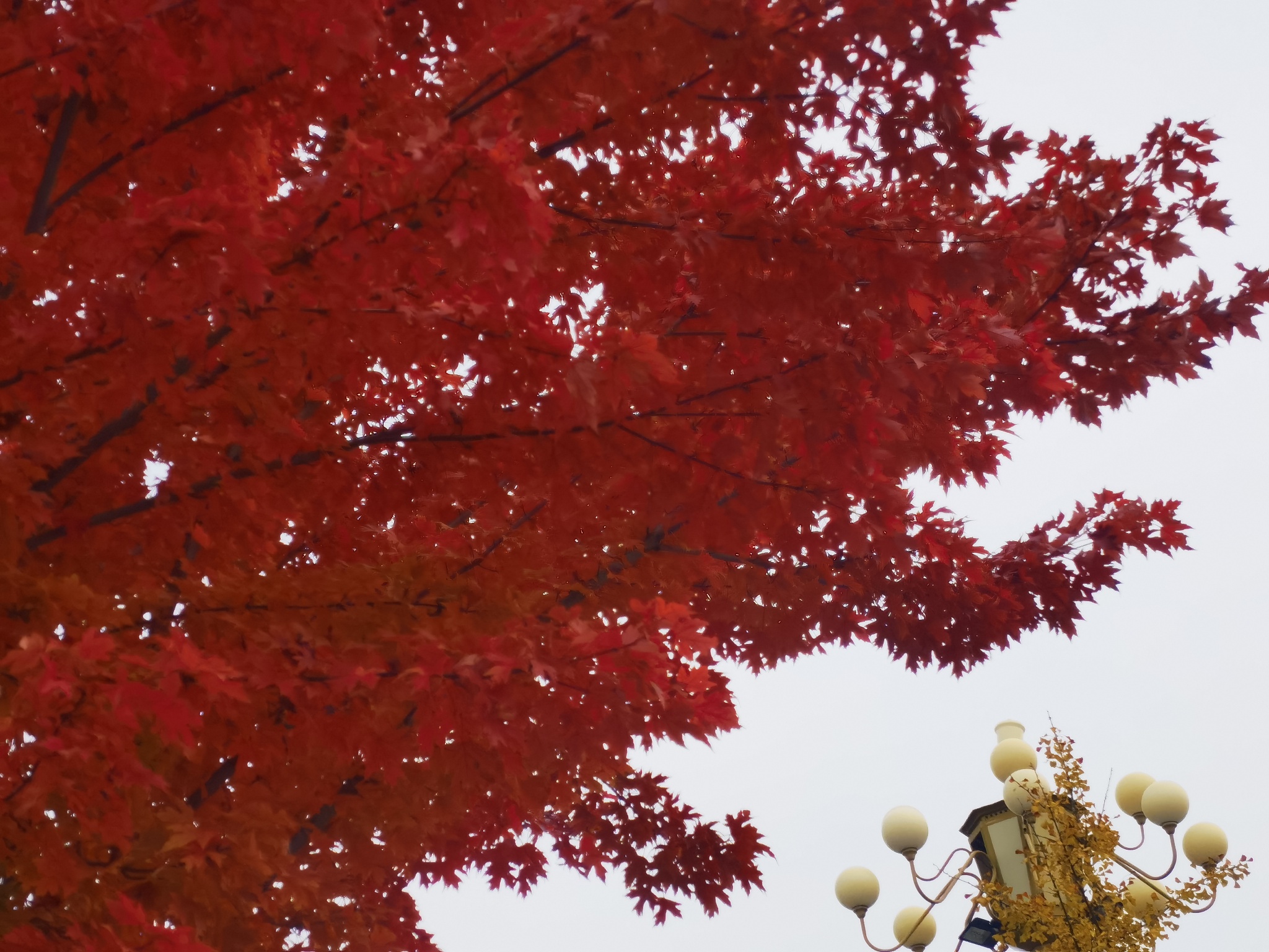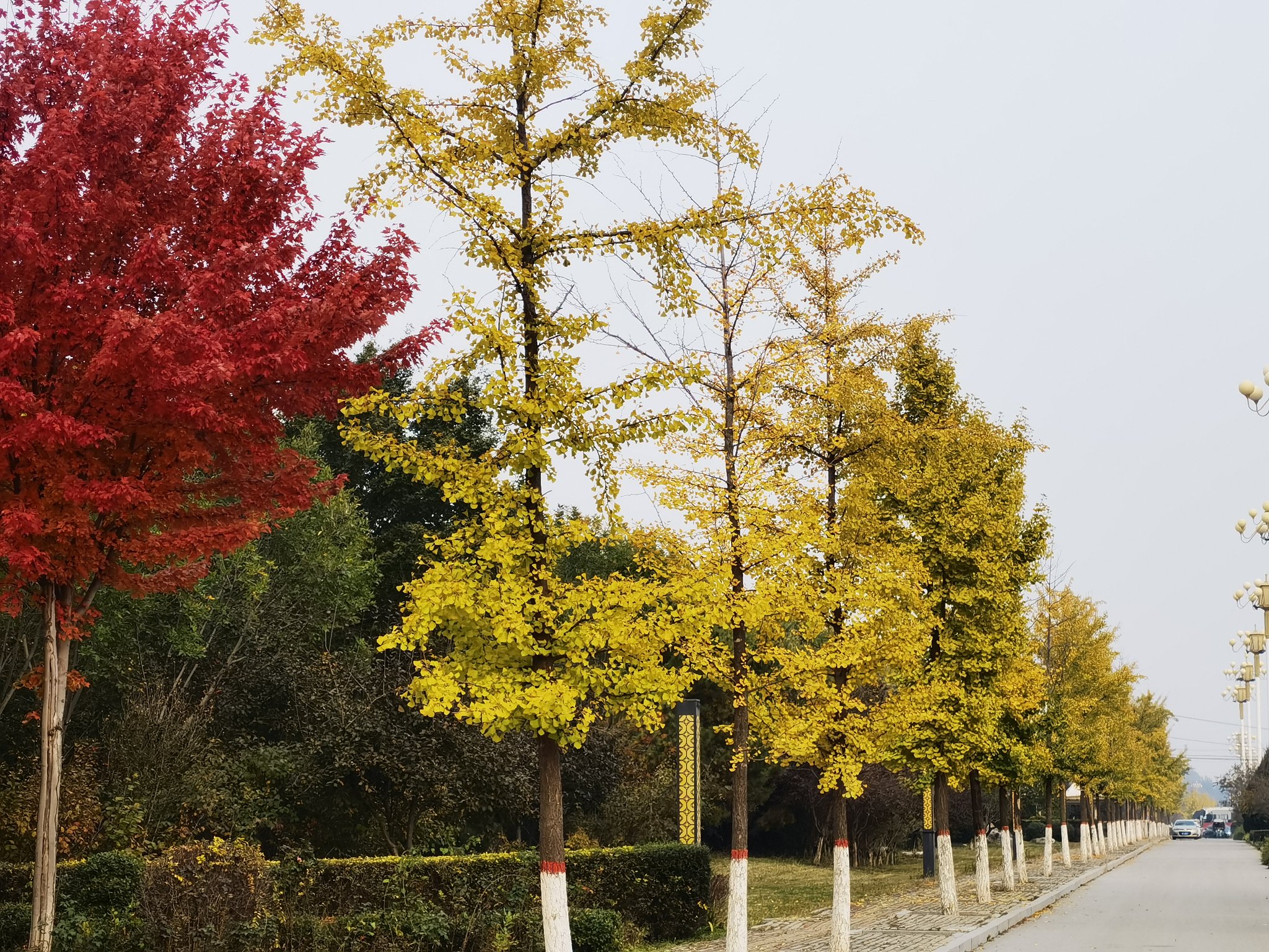 街边的枫叶火红似火,银杏成排尽带黄金甲!