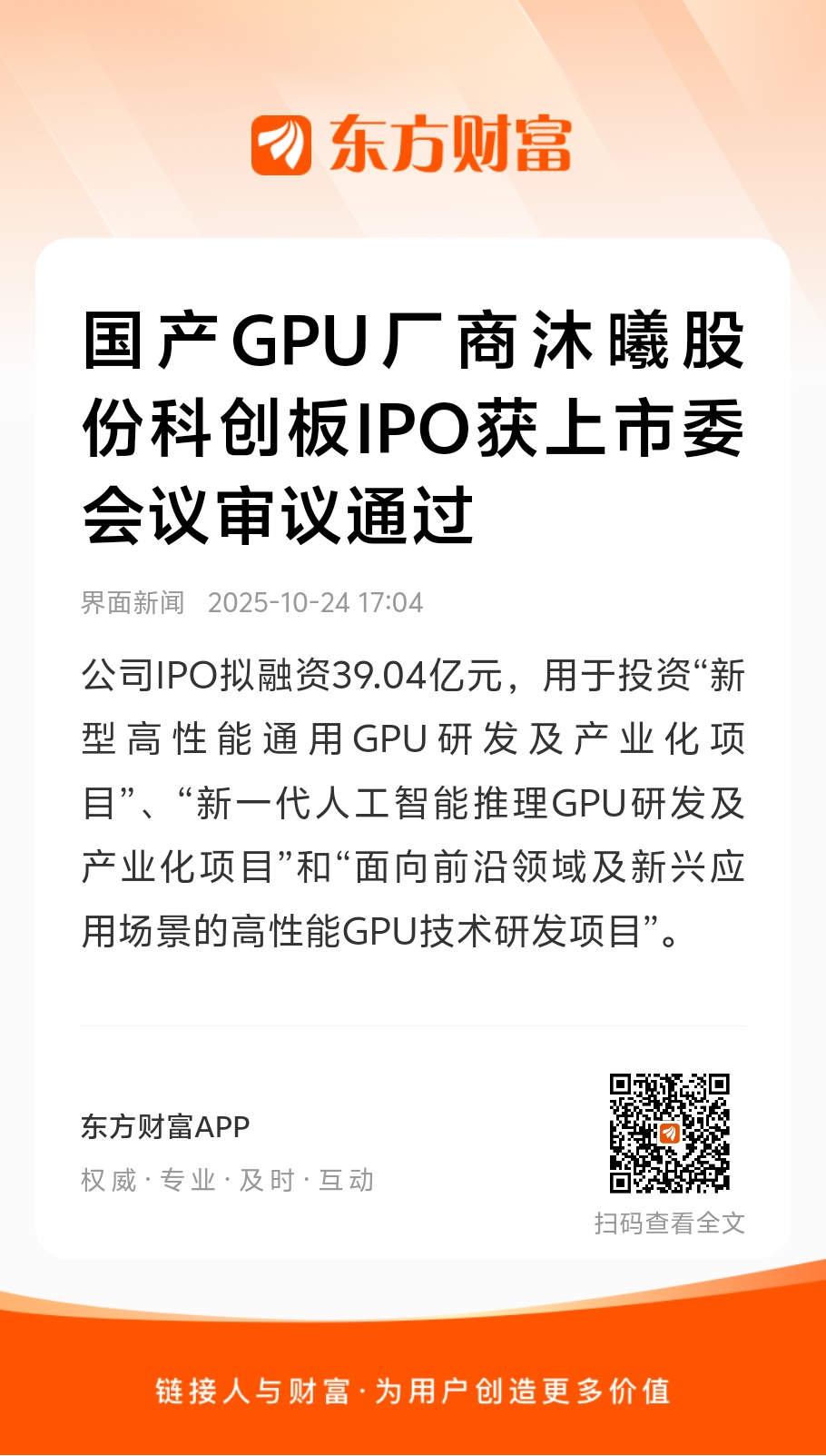 10月24日,国内高性能通用GPU产品领军企业沐曦集成电路(上海)股份有限公司(以下简称“沐曦股份”)IPO申请成功通过上交所科创板上市委会议审议。有分析人士指出,科创板对于国产GPU企业的高效审核过会行为本身与高质量发展的精神高度契合,其风向标意义不言自明。