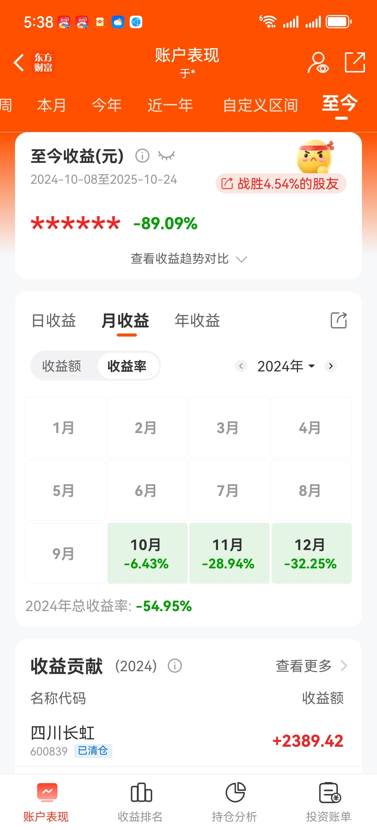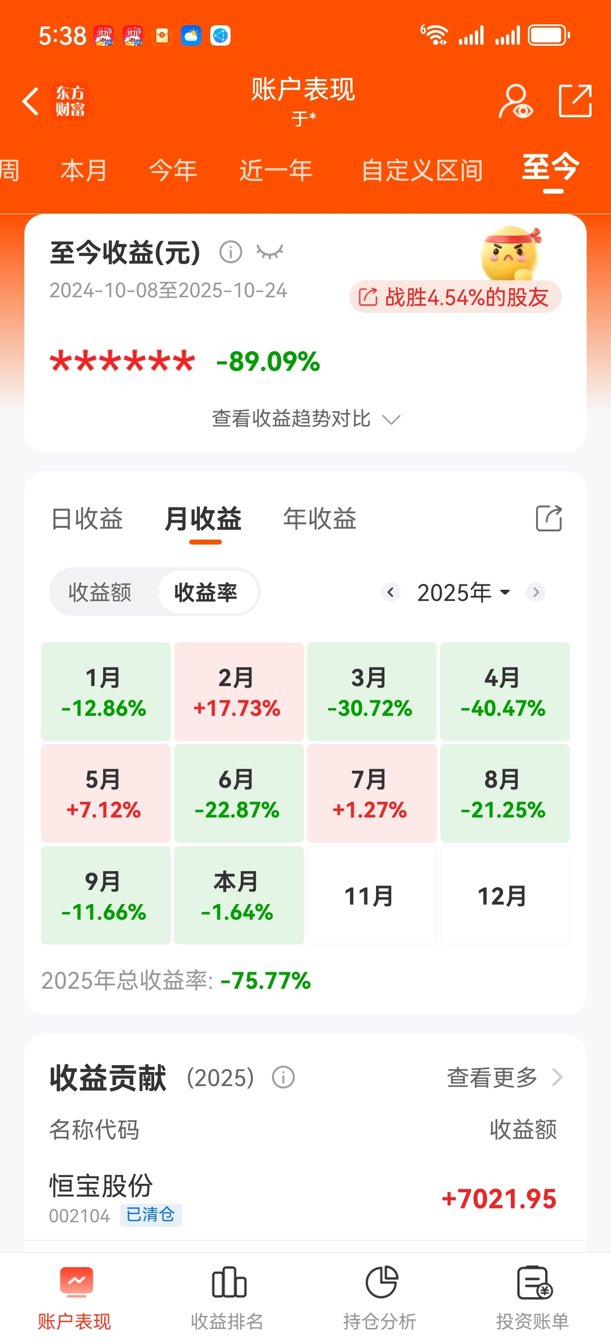 这是炒股以来整整一年,腰斩,腰斩,再腰斩,痛苦,煎熬,晚上想的睡不着,我还是挺过来了,我相信只有经历过,输过,不放弃还能爬起来,看看自己的战绩我也收获很多就当交学费了,重新开始10月新的起点,记录