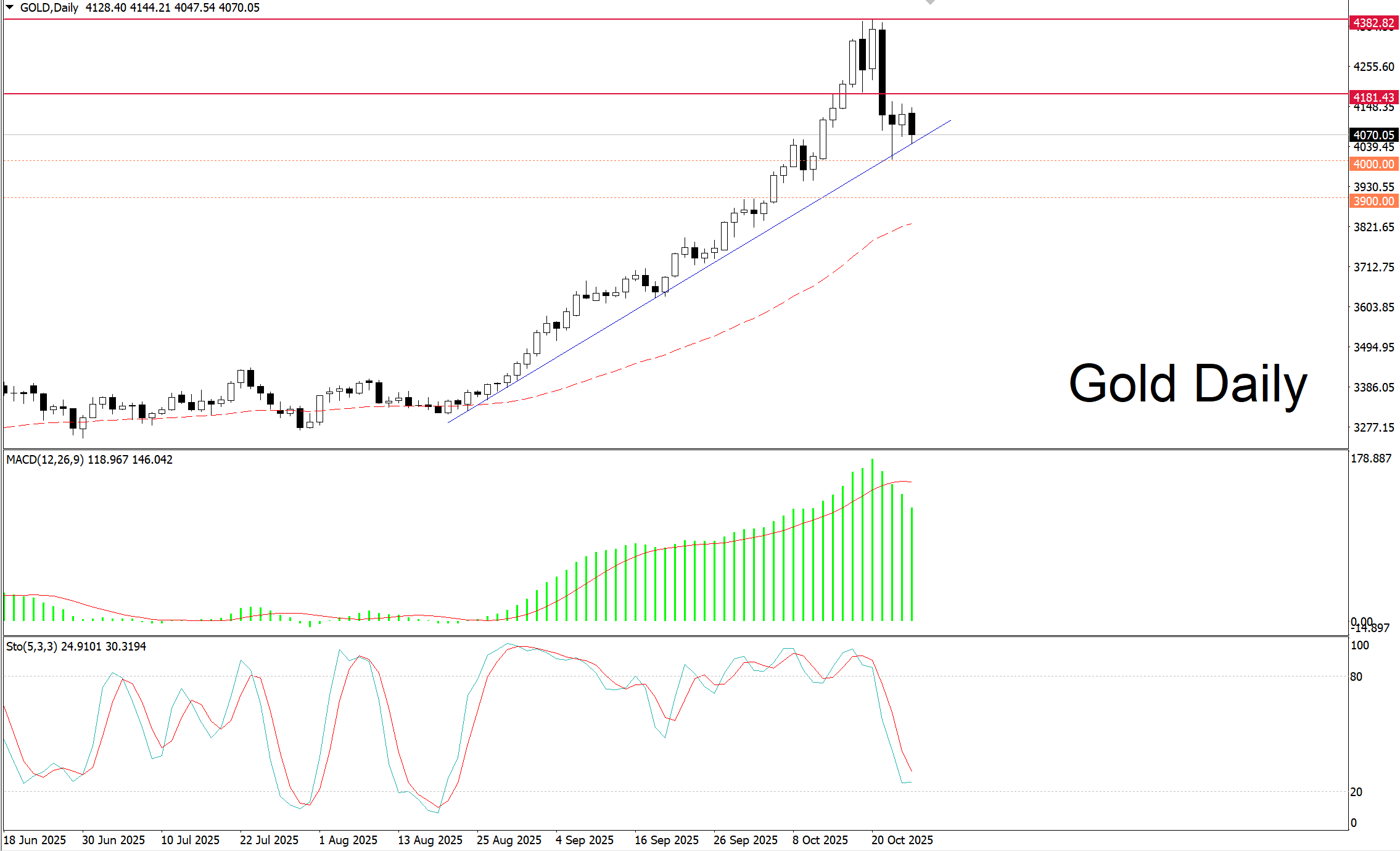昨日市场继续等待美国消费者物价指数出炉,美国政府宣布将于下周与中方在韩国会面,两油连续第二日大幅回升,科技股回勇推动美股三大股指全线反弹,其中纳斯达克指数领涨0.89%,现货金价在美盘交易时段短暂上破欧盘高位以及4150一线后再度回落,最终收报4125.87美元/盎司。
