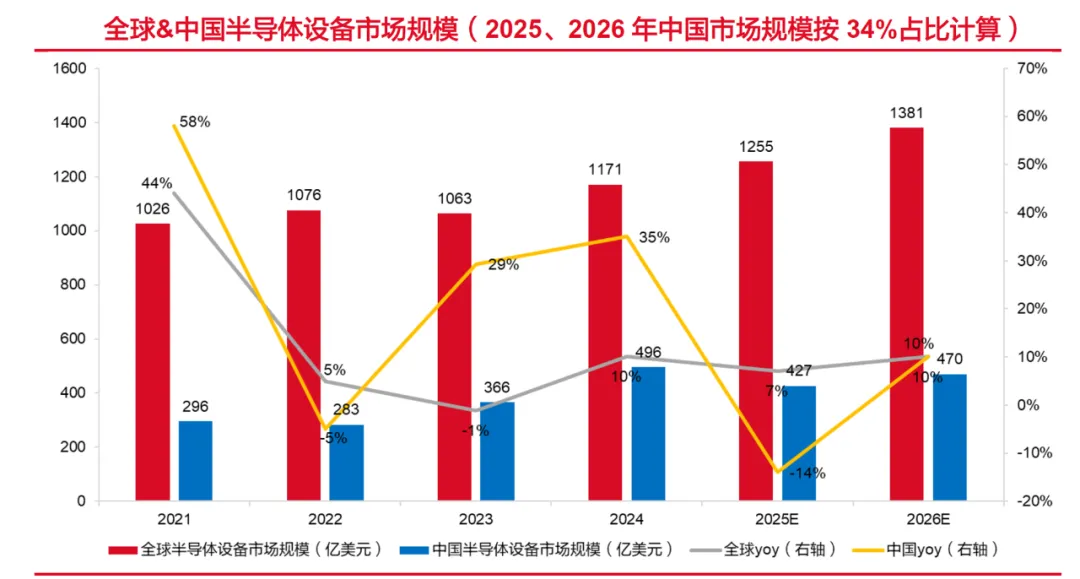 全球半导体设备销售额预计2026年将冲到1380亿美元。中国是全球最大市场,12英寸晶圆产能明年预计突破每月1000万片,占全球三分之一。国内晶圆厂扩产潮还在继续,设备需求远没到顶。