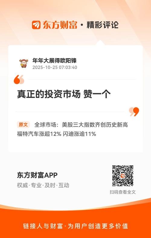 真正的投资市场 赞一个 我在《全球市场:美股三大指数齐创历史新高 福特汽车涨超12% 闪迪涨逾11%》的评论获得了大家的关注。