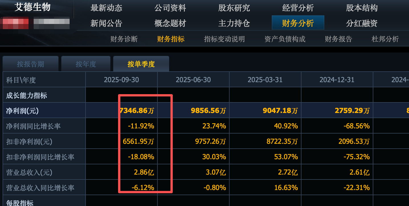 当然三季报业绩增的公司中也有不少暴雷的,比如艾德生物前三季度业绩是增长的,但是第三季度,公司的收入下滑6%到2.86亿,净利润下滑12%到0.73亿元。这种业绩暴雷的大家一定要小心啊,