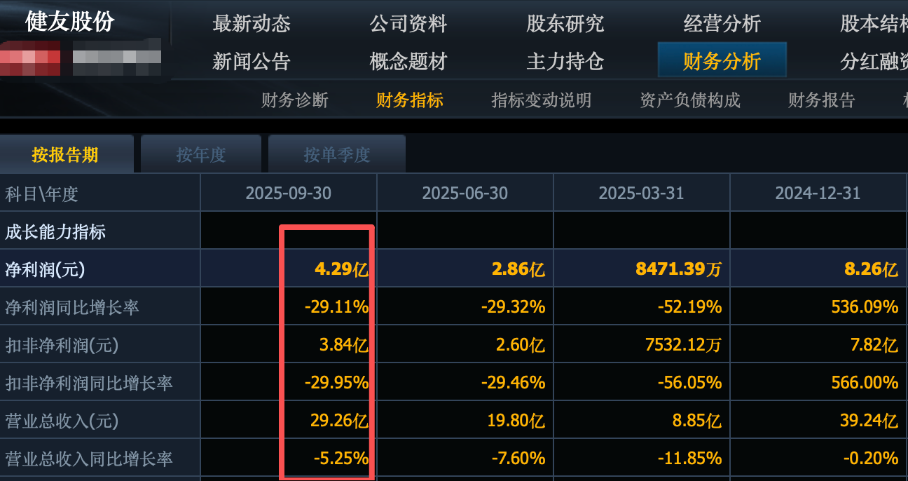 健友股份今年前三季度收入下滑5%到29亿,净利润下滑29%到4.3亿元。