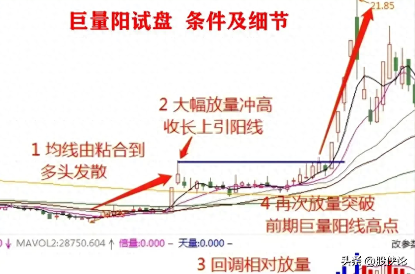 1、试盘的位置:主力大幅拉升前的试盘,是在主力建仓完成后,有了足够的筹码,主力才会准备拉升,反映在K线图上,就是均线由粘合变为多头发散;
