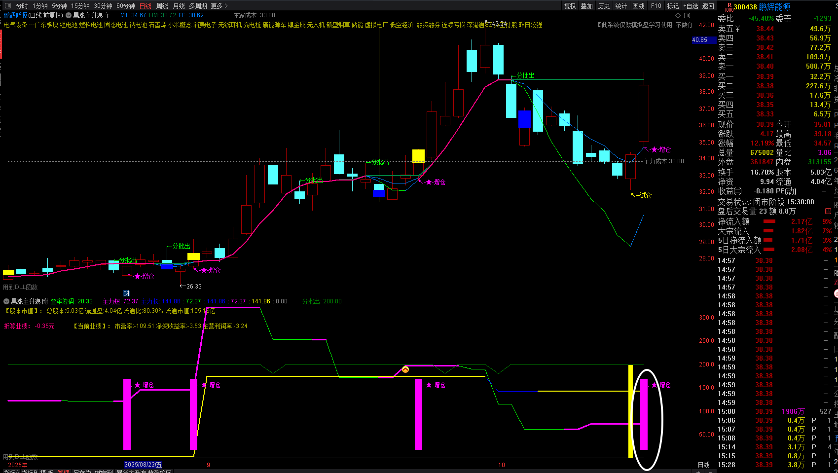 鹏辉能源,10月24日日线出现【增仓】信号,低吸进场点