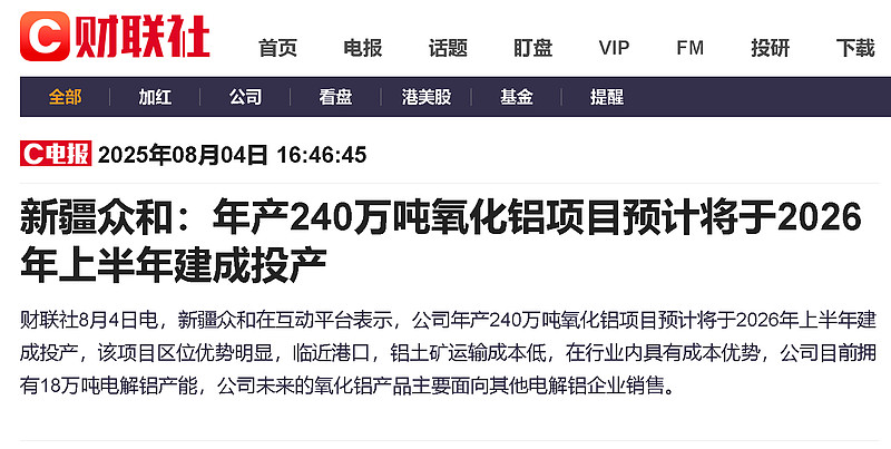 主线六:氧化铝项目——构建“能源-高载能”产业闭环