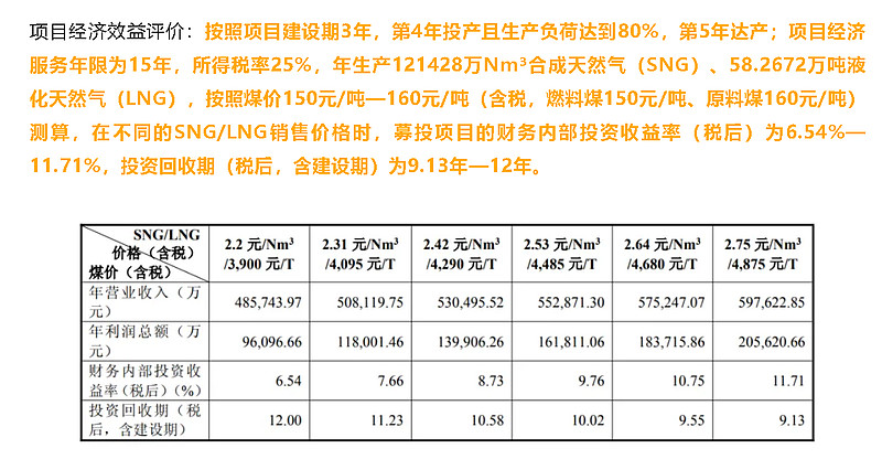 净利润10-20亿:对于一个大型煤制气项目,一旦满产,这个利润规模是可能的。但需要注意,煤化工项目投资巨大,运营成本也高,其盈利能力对天然气价格和煤炭成本的敏感性很高。