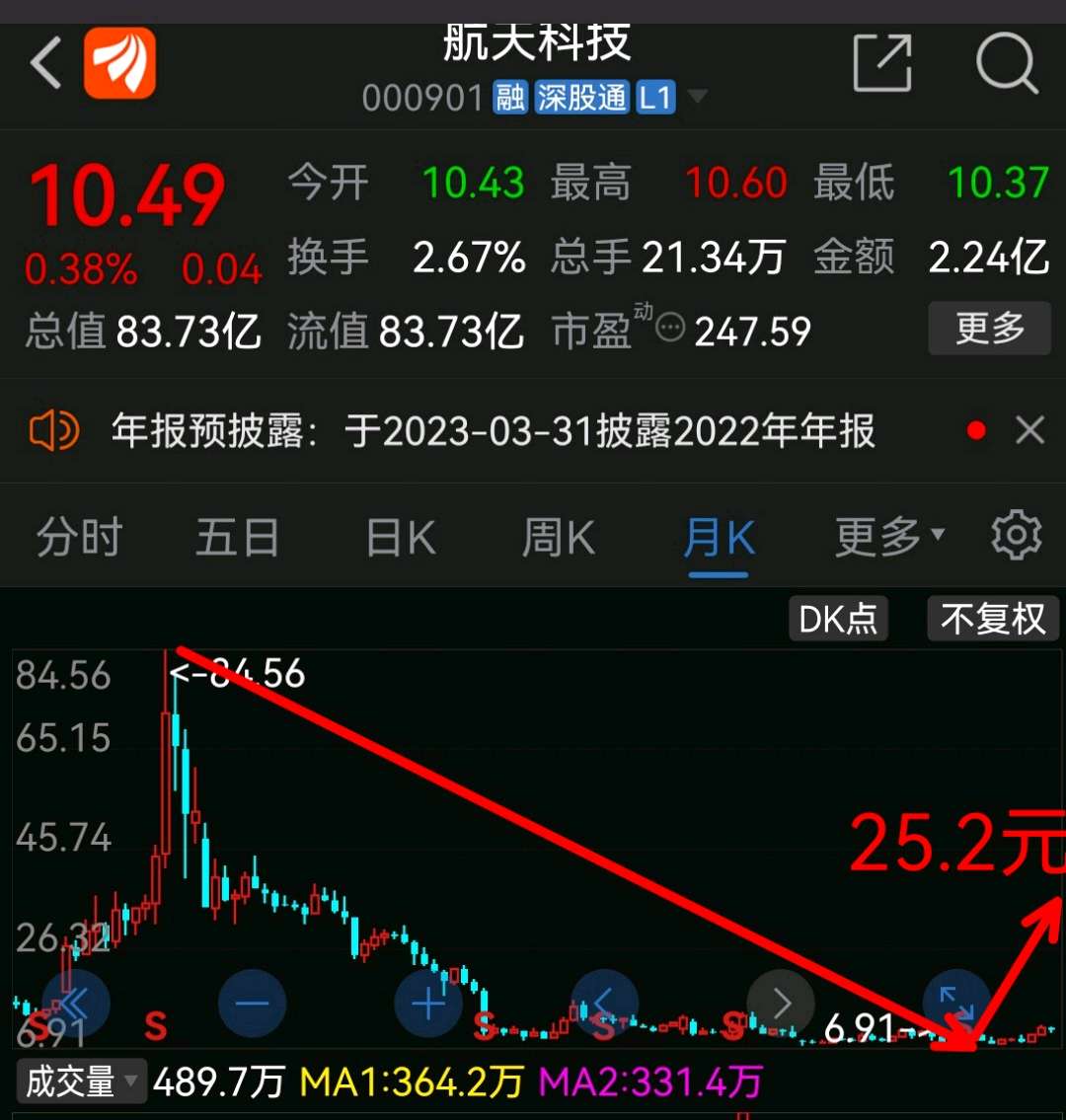 航天科技又是超跌(今年以来已经翻翻票都是这种超跌品种,汤姆猫,三六零,容大感光,等 还有很多),从84.56元杀跌6.91元,反抽第一个高度计算价位是25.2元左右,即回补完18年除权缺口18元左右还要惯性冲击25元左右。