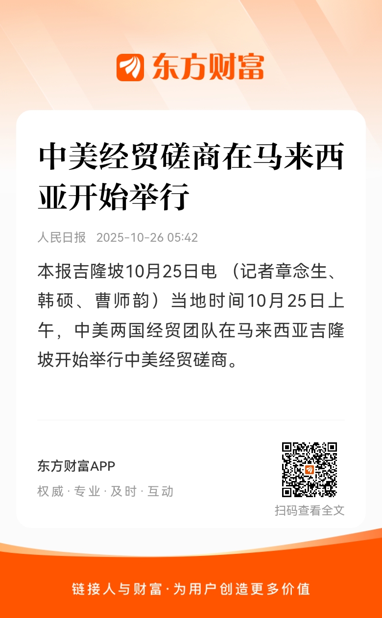 本报吉隆坡10月25日电 (记者章念生、韩硕、曹师韵)当地时间10月25日上午,中美两国经贸团队在马来西亚吉隆坡开始举行中美经贸磋商。
