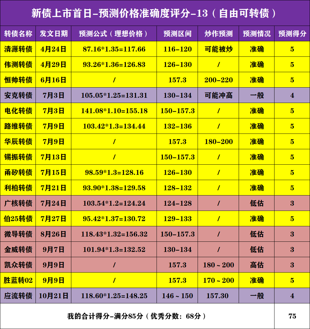 预测准确度评价权重:最高权重为转债上市当天最高价,第二权重为上市当天收盘价与其他。