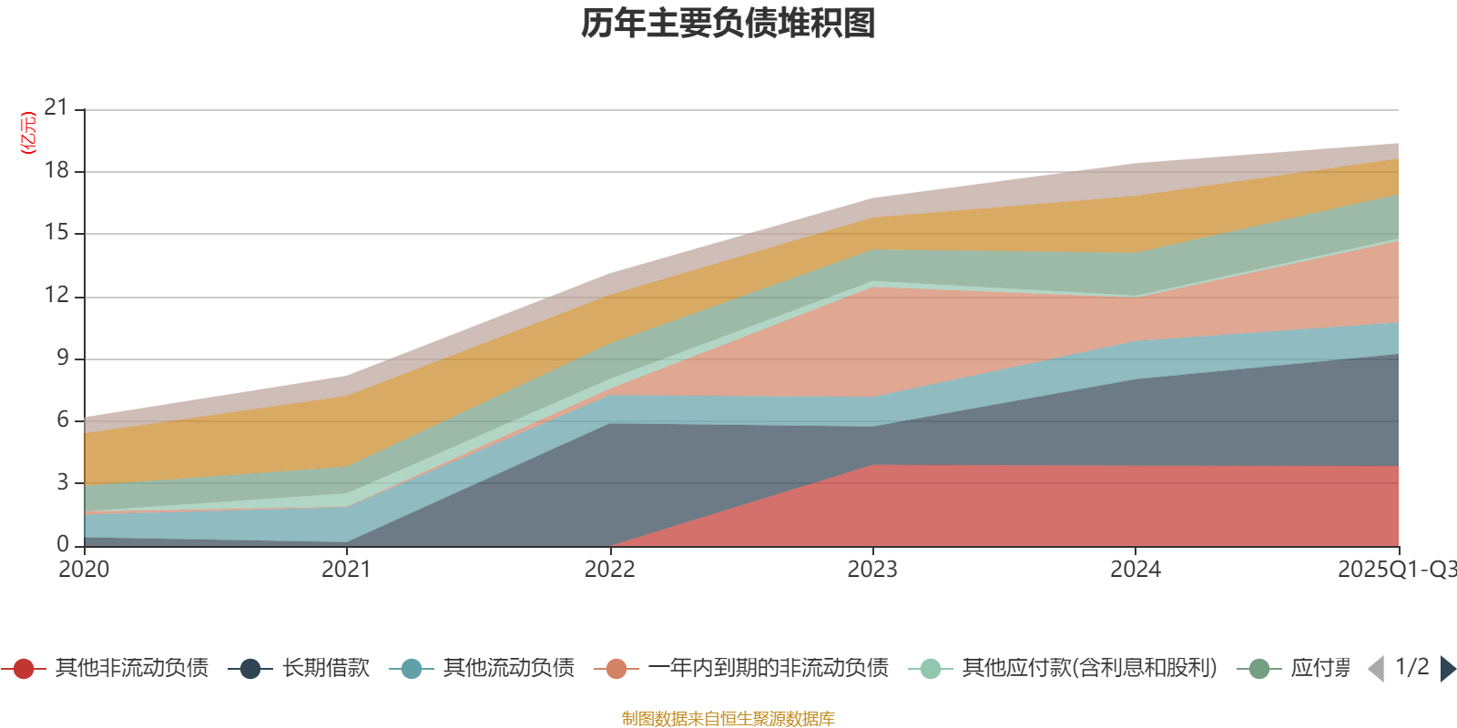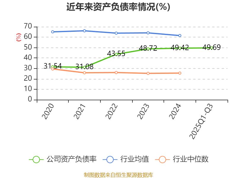 负债重大变化方面,截至2025年三季度末,公司一年内到期的非流动负债较上年末增加87.39%,占公司总资产比重上升4.44个百分点;短期借款较上年末减少37.09%,占公司总资产比重下降2.93个百分点;长期借款较上年末增加29.35%,占公司总资产比重上升2.64个百分点;长期应付款合计较上年末减少89.31%,占公司总资产比重下降1.31个百分点。