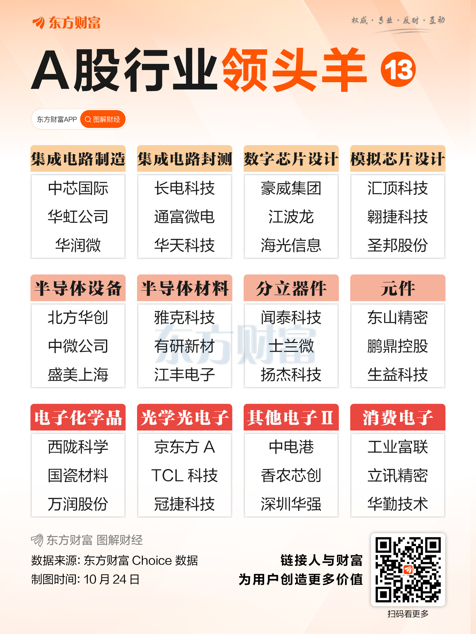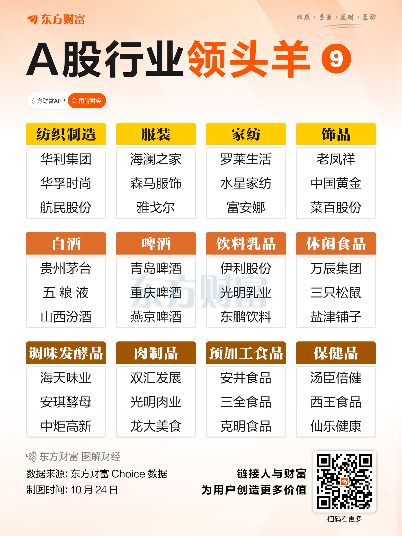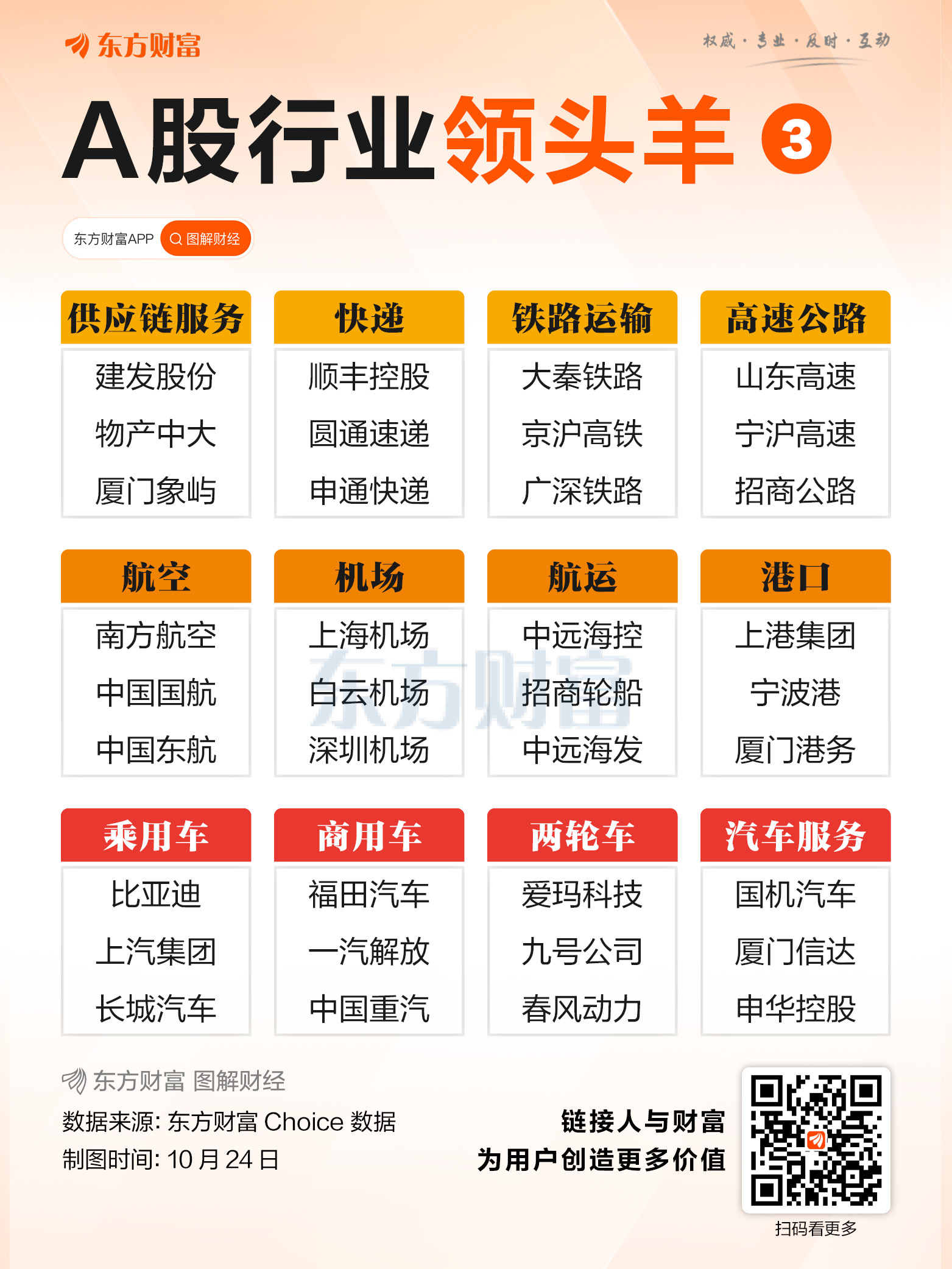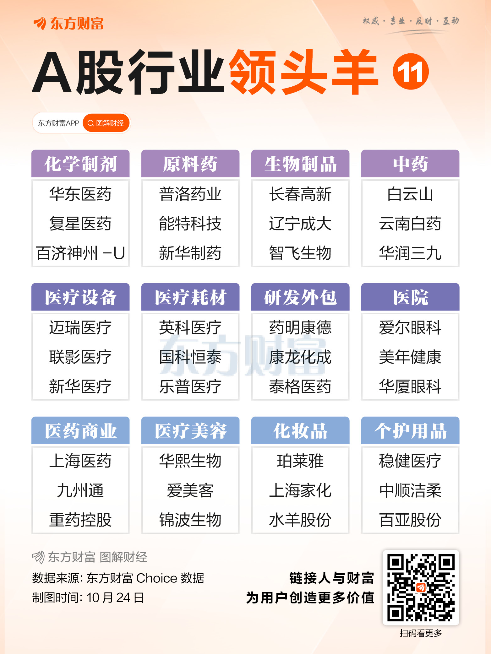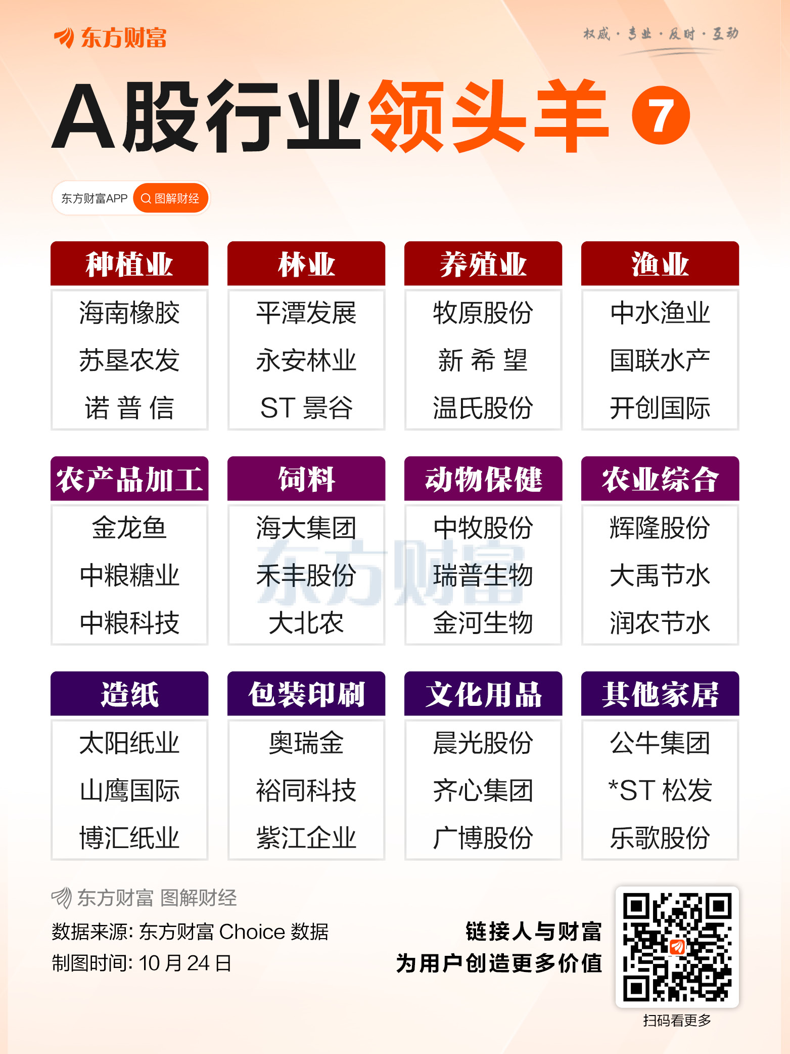 根据东方财富Choice数据,本文筛选出了各行业最新营业总收入前三的个股作为行业“领头羊”,总计包含申万一级行业(除综合行业外)30个,涉及申万二、三级行业168个。