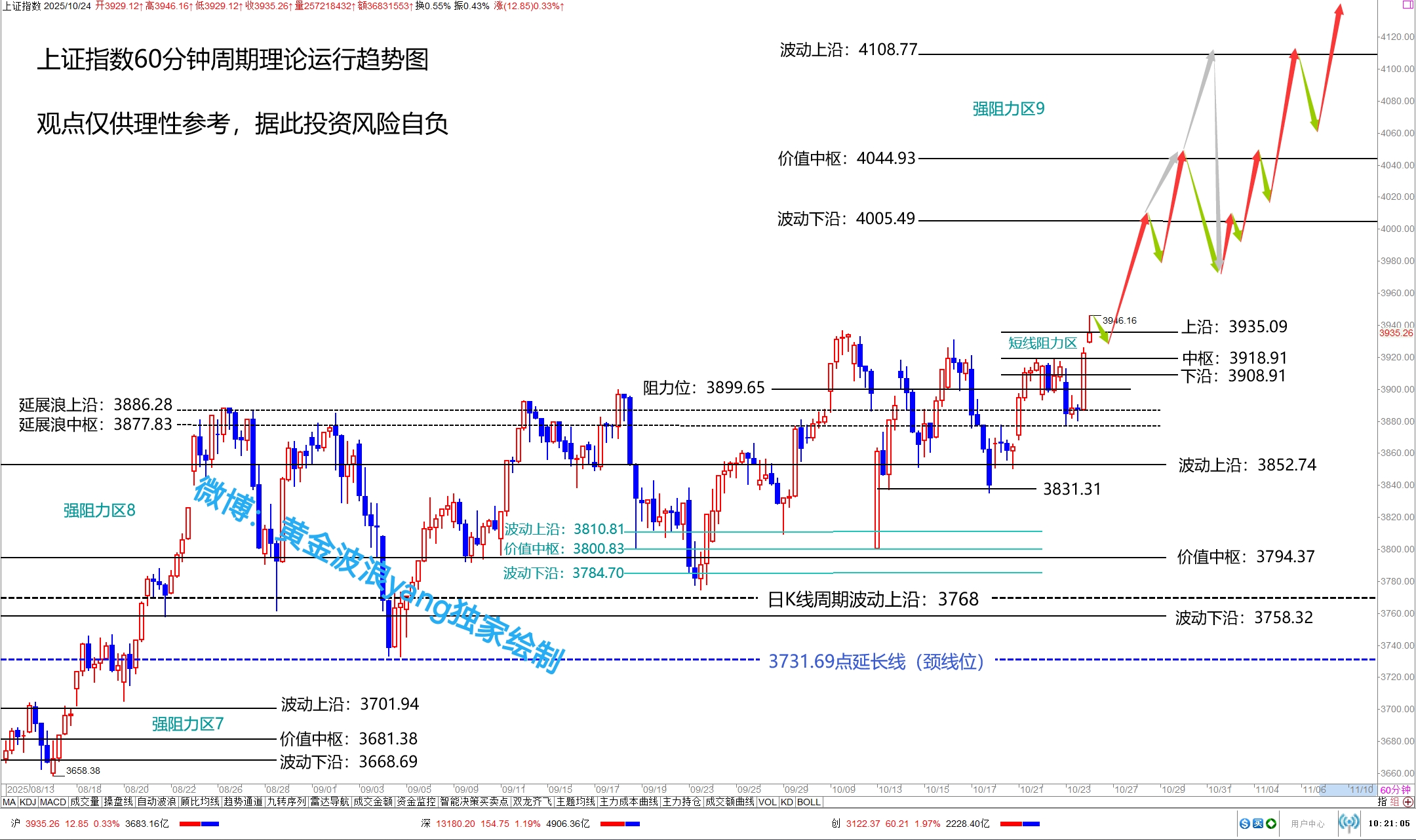 上证指数60分钟周期理论运行趋势图