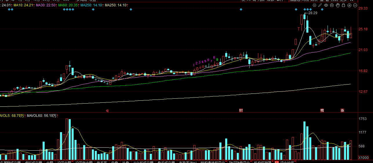 通富微电002156:半导体行业周期上行态势明确,近期半导体行业去库存进度及 AI 算力需求对先进封装业务的拉动,中长期需跟踪全球芯片需求提升。通富微电前期走出了主升浪行情之后,短期来看有企稳的迹象,上周五的成交量也是在温和的放量,现在做龙回头还是很有性价比的。从波浪理论来看,大主升浪还是向上的,短线有波动也是属于正常,周一如果能够小幅的高开在两个之内,有接力还是可以会会他的,这周值得研究。