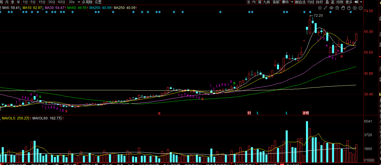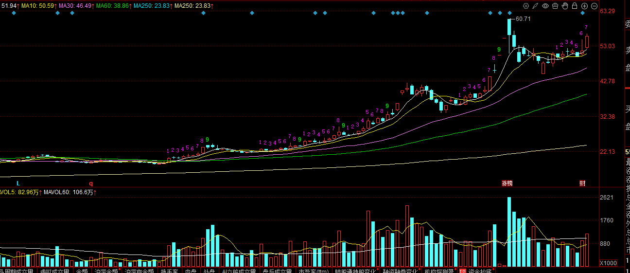 和而泰002402:公司是人形机器人叠加卫星芯片概念股,近期的走势还是比较稳的,量价齐升,前期的压力位在60.71附近,周一有接力还是有望继续惯性冲高的,短线就是需要顺势而为。现在整体的趋势仍然还是向上的,周一有接力还是红三兵的预期。上周四洗盘结束之后,周五有要走加速的迹象,这周值得期待。