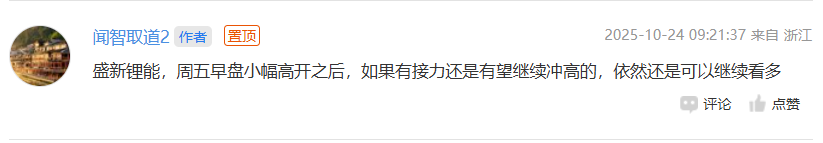 $盛新锂能(SZ002240)$:从周末的业绩预告来看,2025年第三季度归母净利润同比增长132.30%,还算是符合预期的,上周五的阴线调整更像是洗盘的动作,这周有接力还是有望迎来反包的。从技术面来看,现在均线是标准的多头趋势排列,现在还是继续在上升通道之中,短线就是需要顺势而为。