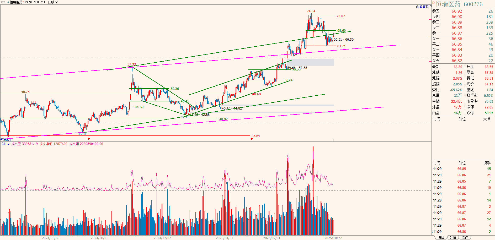 股价从区间上边界拉升,接下来继续按照区间边界来跟踪。同时超短线关注区间内部68位