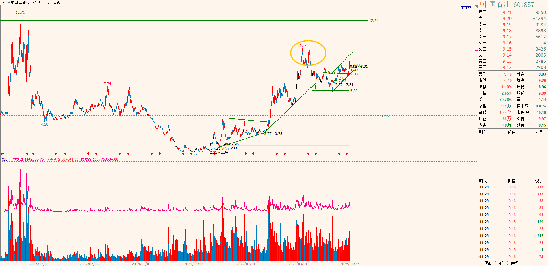 昨天行情小幅回调,今天再次拉升,这个位置的震荡可以理解,因为前高区域有成交密集区