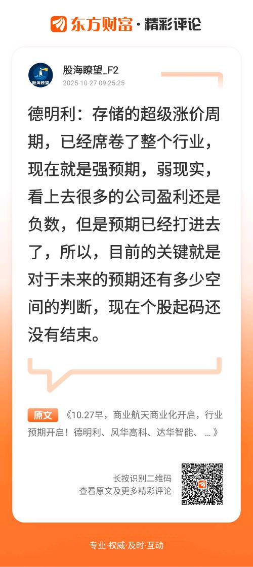 //@股海瞭望_F2 :德明利:存储的超级涨价周期,已经席卷了整个行业,现在就是强预期,弱现实,看上去很多的公司盈利还是负数,但是预期已经打进去了,所以,目前的关键就是对于未来的预期还有多少空间的判断,现在个股起码还没有结束。