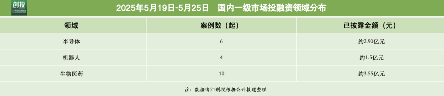 过去一周披露的投融资案例显示,科技与制造行业依旧是资本关注的重点。资金持续向前沿技术聚焦,涵盖半导体设备、机器人和人工智能等赛道。医疗健康赛道的融资同样亮眼,柯君医药单笔融资过亿元,多家企业完成大额天使轮融资。
