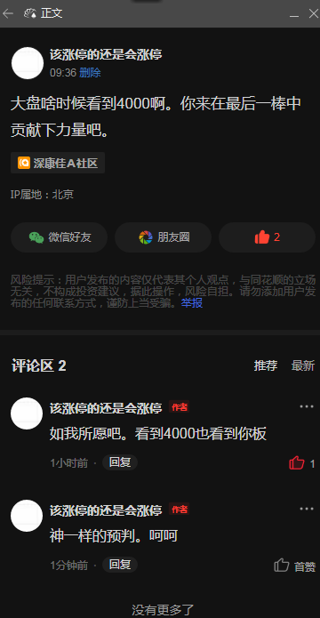 温馨提示: 1.根据《证券法》规定,禁止编造、传播虚假信息或者误导性信息,扰乱证券市场;2.用户在本社区发表的所有资料、言论等仅代表个人观点,与本网站立场无关,不对您构成任何投资建议。用户应基于自己的独立判断,自行决定证券投资并承担相应风险。《东方财富社区管理规定》