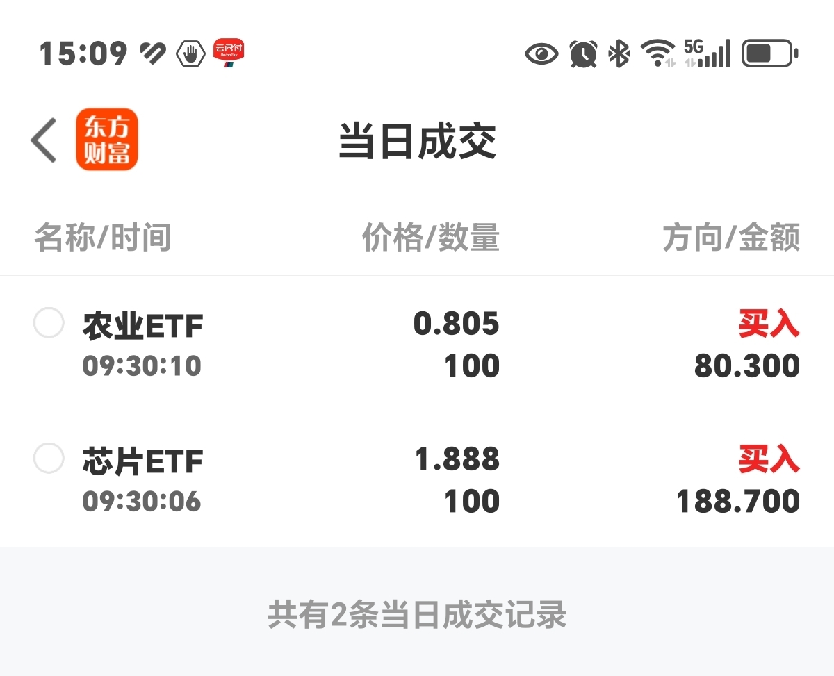 今天网格交易无成交,芯片基农业基每个交易日定投100份正常买入。