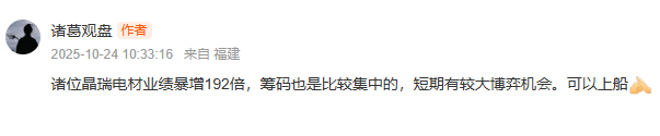 晶瑞电材300655:晶瑞电材今日在业绩暴增192倍的利好催化下,如期迎来大涨,主力大幅流入,量能同步大幅放大,呈现量价齐升的强势态势。业绩大增为股价提供坚实支撑,后续有望稳住涨幅继续上行。都督选择继续持有,后续若出现冲高乏力、量能萎缩的情况,便及时止盈落袋,锁定业绩红利。