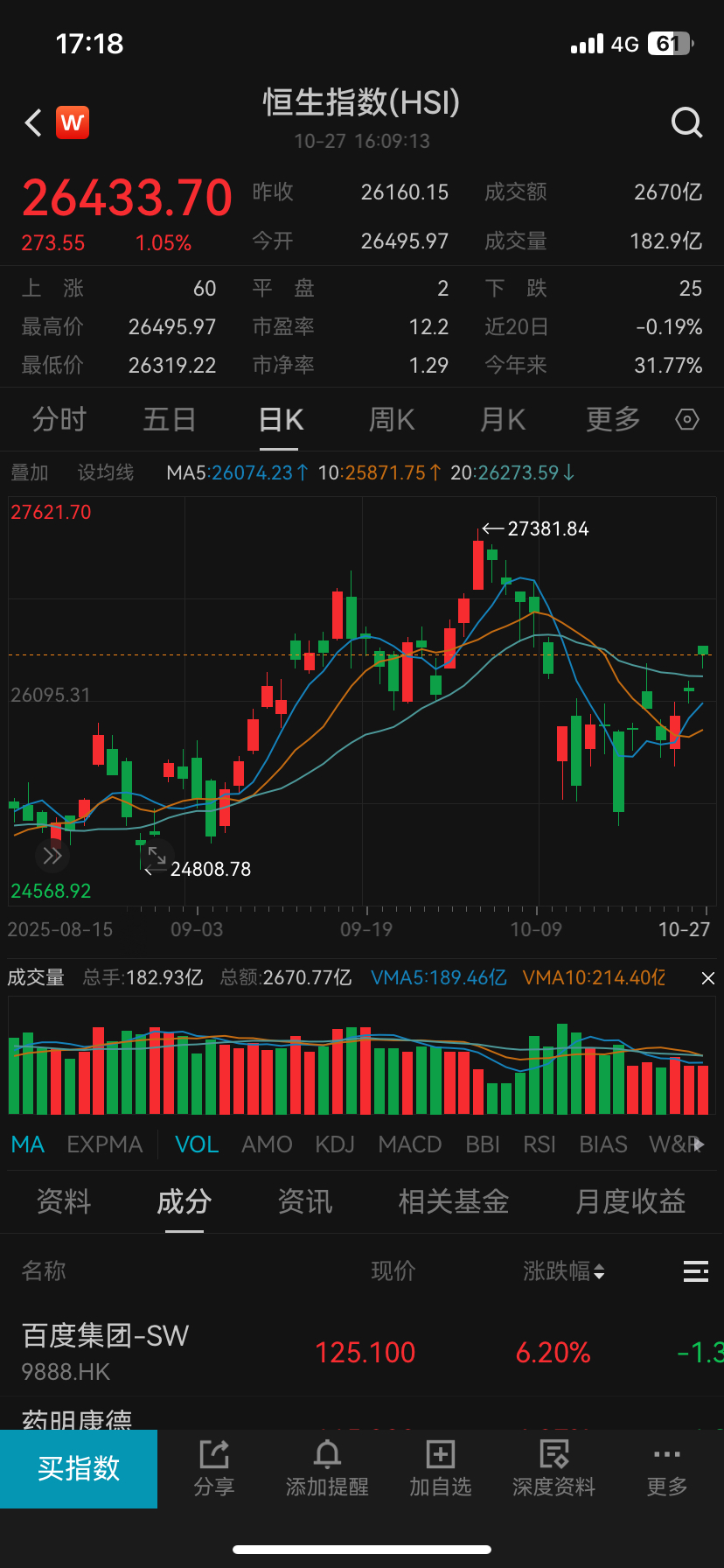 恒生指数看其实A股抢跑了,十月就一个月没有主线大家的利润就全部回吐了,这两天科技