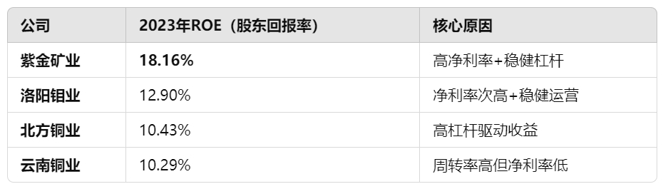 紫金矿业是最强铜企! 以最低的财务杠杆,创造了最高的盈利能力,ROE领先其他三家,综合含金量最高!