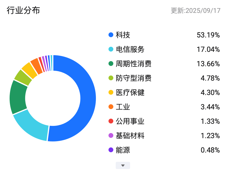 纳斯达克100指数涵盖了纳斯达克交易所上市的100家最大的非银金融公司,覆盖科技、消费服务、健康护理、工业等高增长行业,其中科技行业占比高达50%,科技含量很高