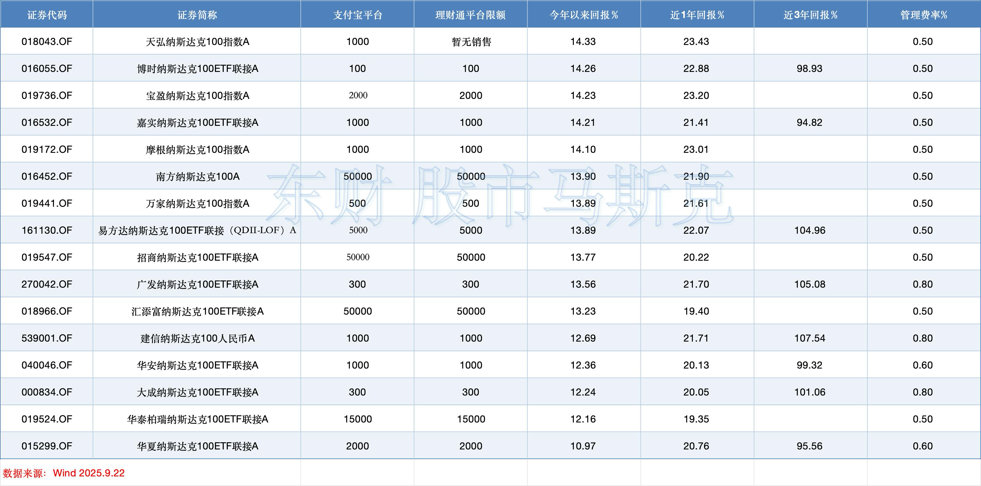 为此我也统计了最新的场外纳斯达克100指数的相关限额情况供大家参考,后面在进行加仓的时候就知道哪些基金的额度更高了