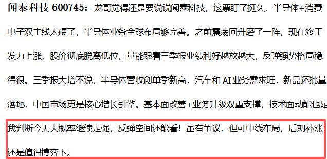 $闻泰科技(SH600745)$600745:闻泰科技周五在板块领涨时显露分歧,叠加周末业绩大幅增长的利好加持,今日如期迎来补涨!早盘开盘前便提示该股有补涨预期、值得关注,盘中顺势介入后,午后成功上板兑现预期,表现完全契合判断。当日主力大幅流入、量能同步放大,多头势能十分强劲,预计后续有望延续加速修复行情,继续向上突破,把握业绩+资金双重驱动下的上行机会。