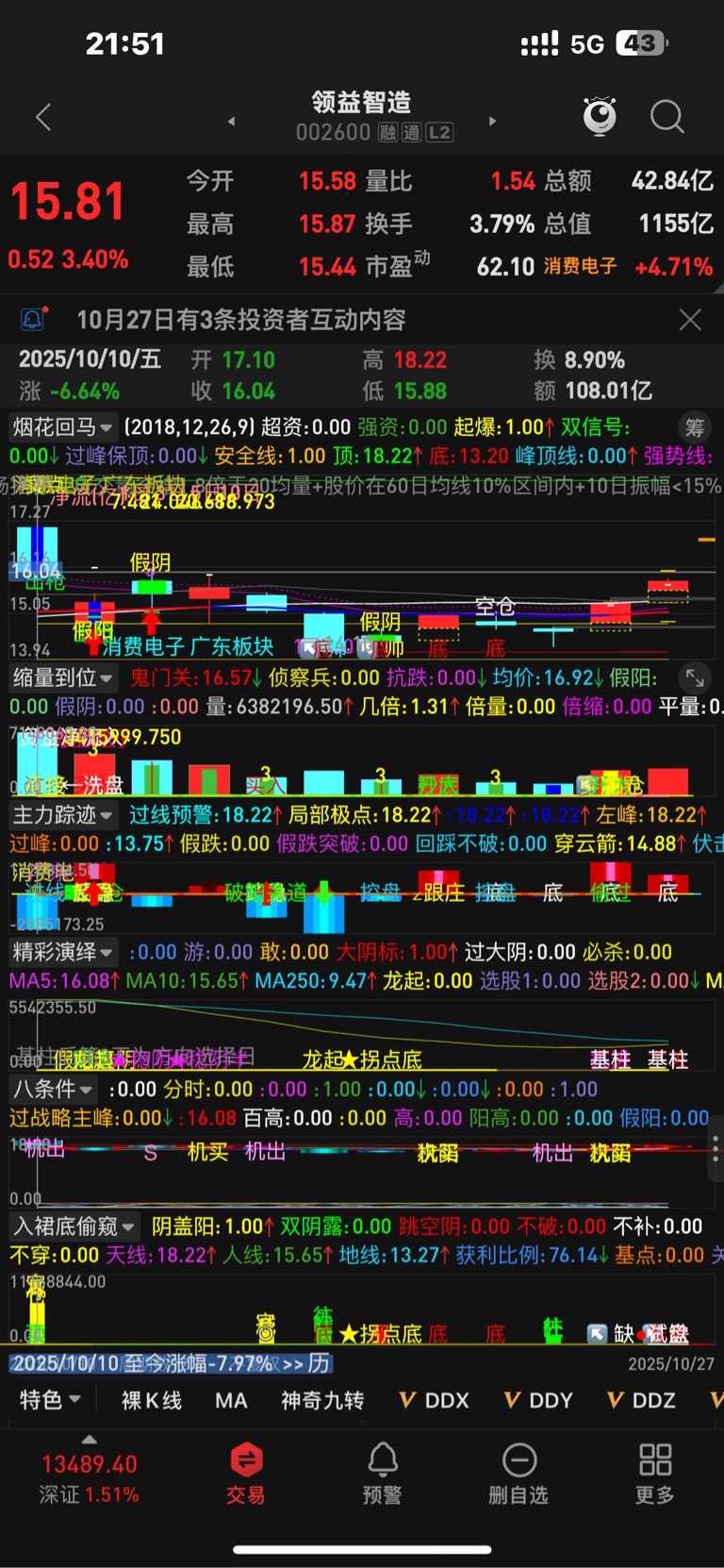 领益,二元联动,偷偷摸摸过左阴实顶,站上高量底15.88一定有惊喜,今天加仓