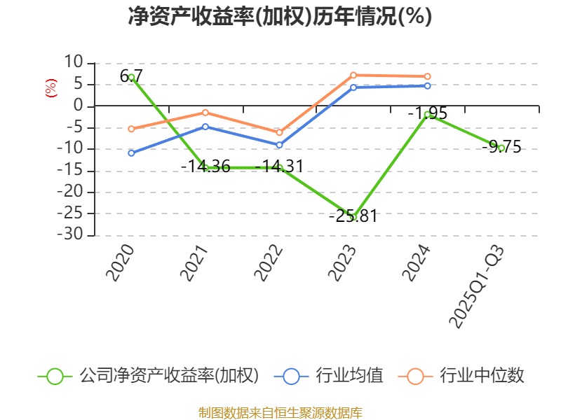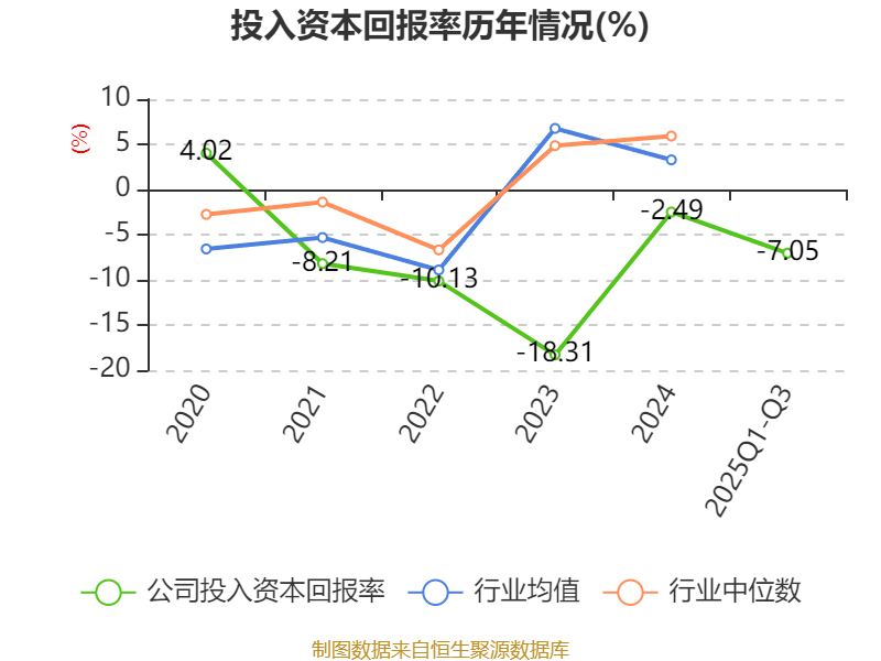 盈利能力方面, 2025年前三季度公司加权平均净资产收益率为-9.75%,同比下降18.68个百分点。公司2025年前三季度投入资本回报率为-7.05%,较上年同期下降13.56个百分点。